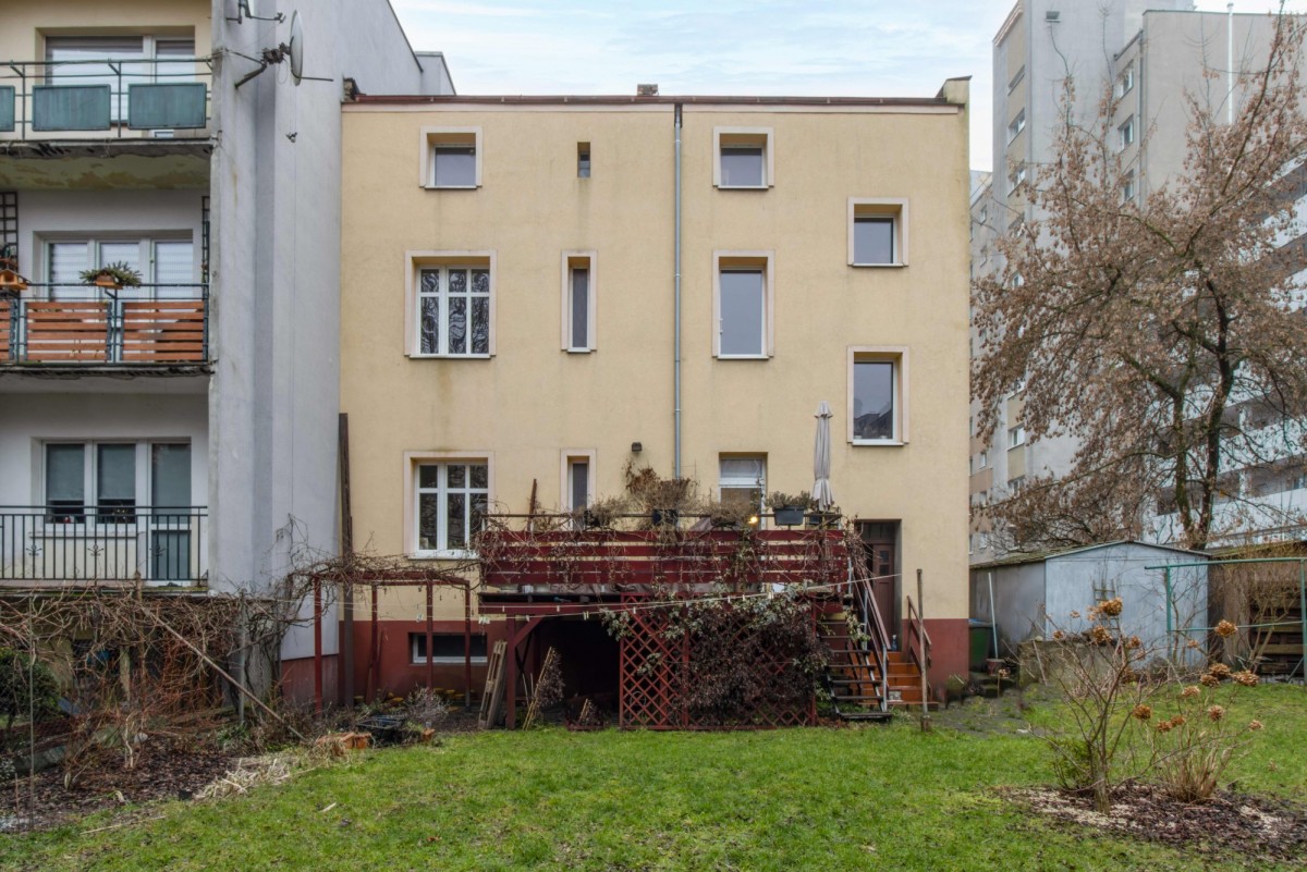 Nieruchomość charakteryzuje się klasyczną, przedwojenną architekturą o prostej bryle. Elewacja frontowa utrzymana jest w ciepłej, żółtej kolorystyce, natomiast tył budynku otwiera się na prywatny ogród, który stanowi rzadko spotykany atut w tej części miasta.