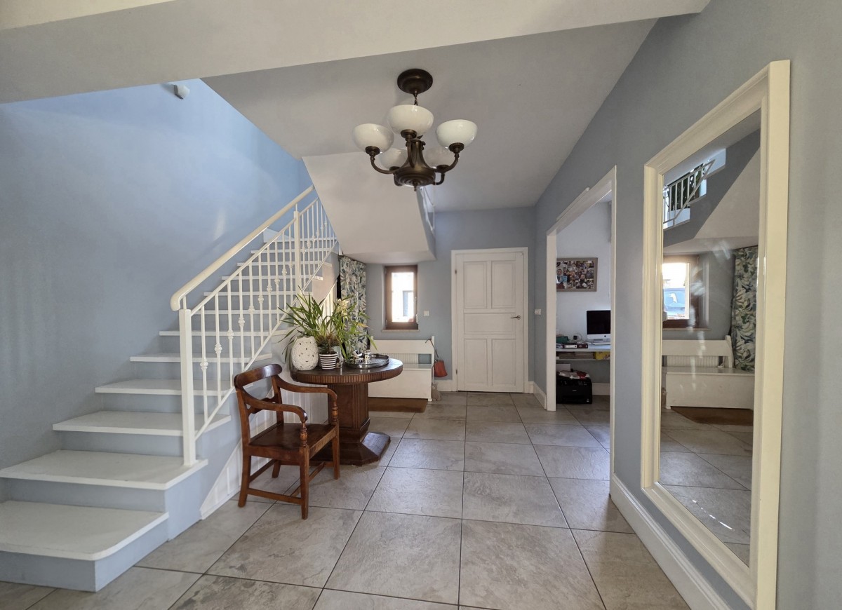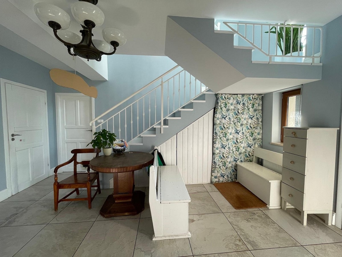 Wnętrze domu utrzymane jest w nowoczesnym stylu z klasycznymi akcentami i eleganckimi wykończeniami, tworząc przytulną i funkcjonalną przestrzeń.