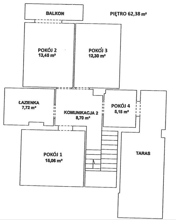 - 4 pokoje (w tym jeden z balkonem, drugi z tarasem)
