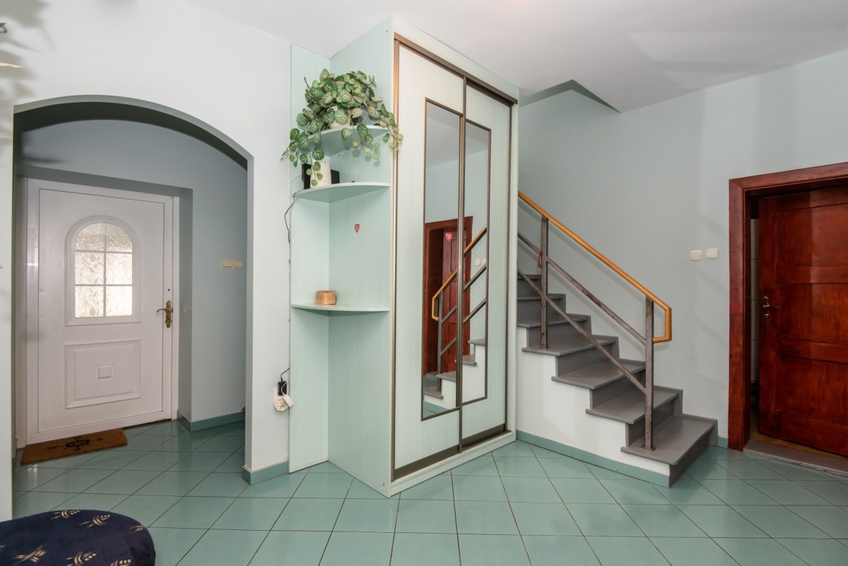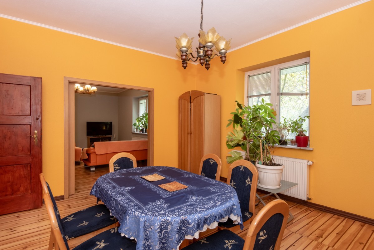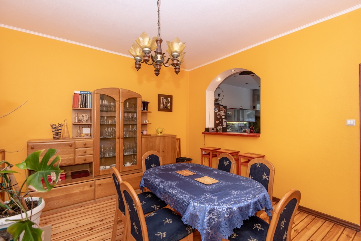 Dom o powierzchni użytkowej około 276,93 m2 wybudowany został w 1986 roku oraz garaż wolnostojący o powierzchni 21,84 m2 znajdują się na działce o powierzchni około 721 m2. Niewątpliwym atutem nieruchomości jest przestronny ogród, słoneczny i ustawny salon, kuchnia z jadalnią, funkcjonalny rozkład pomieszczeń. Dodatkowo w bryle budynku została wydzielona kawalerka z niezależnym wejściem o powierzchni około 27,5 m2.