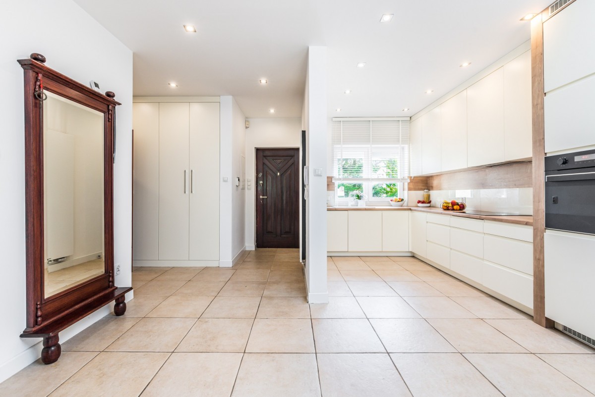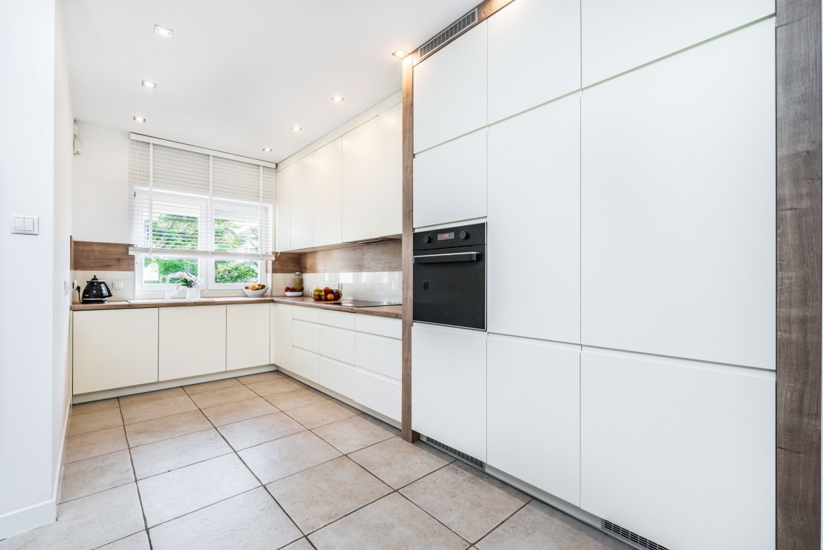 - nowoczesna kuchnia z meblami w zabudowie i wyposażeniem z roku 2020;
