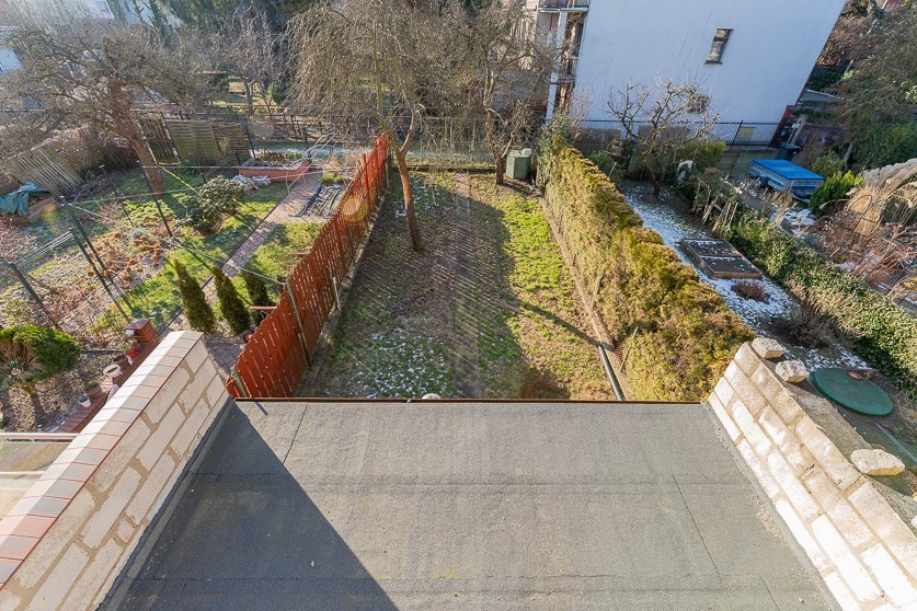 Pierwsze piętro to strefa dzienna - przestronny salon, kuchnia oraz łazienka z prysznicem. To poziom, który po modernizacji może stać się jasnym i nowoczesnym centrum domu. Możliwość wstawienia dużego przeszklenia HSL na całej szerokości budynku, doda nowoczesnego wyglądu i zwiększy komfort mieszkania o dodatkową przestrzeń tarasową z zejściem do ogrodu.
