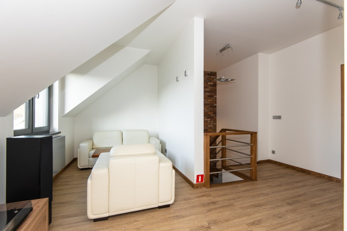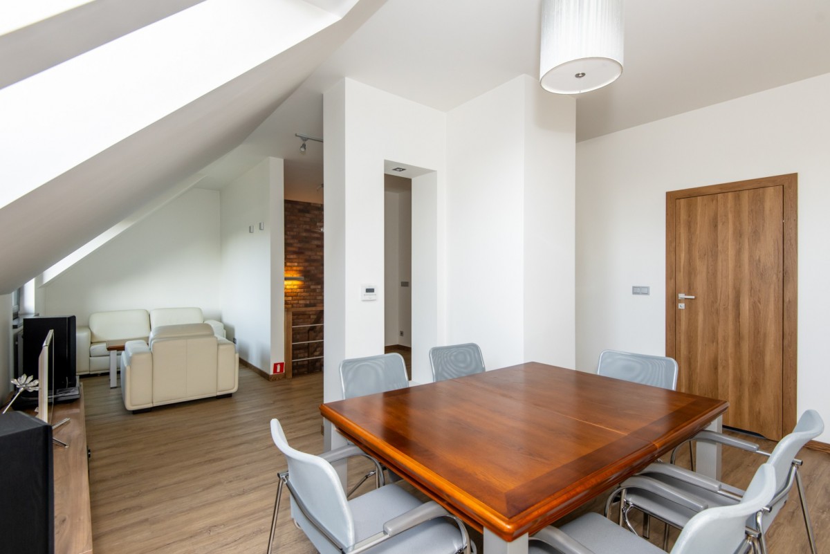 Z dwóch pomieszczeń prowadzi bezpośrednie wyjście na taras o powierzchni około 20 m².