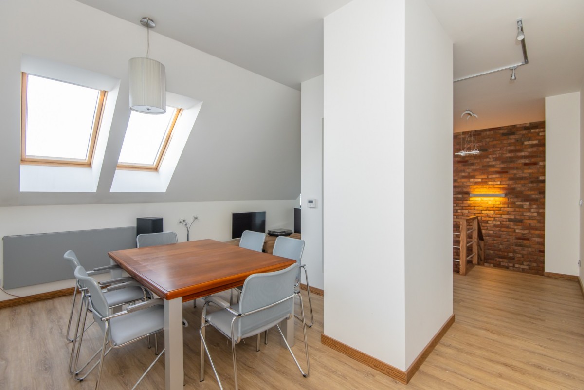 Aktualnie wykorzystywana jest jako biuro, jednak jej funkcjonalny układ oraz standard wykończenia pozwalają na dostosowanie do funkcji mieszkalnej.