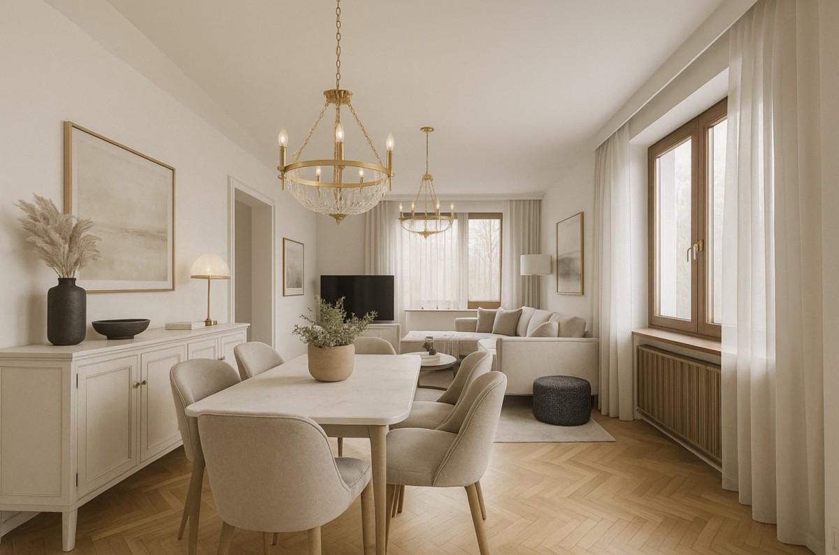 Przestronne wnętrza o przemyślanym układzie ; idealne zarówno dla rodziny, jak i jako reprezentacyjna przestrzeń do spotkań.