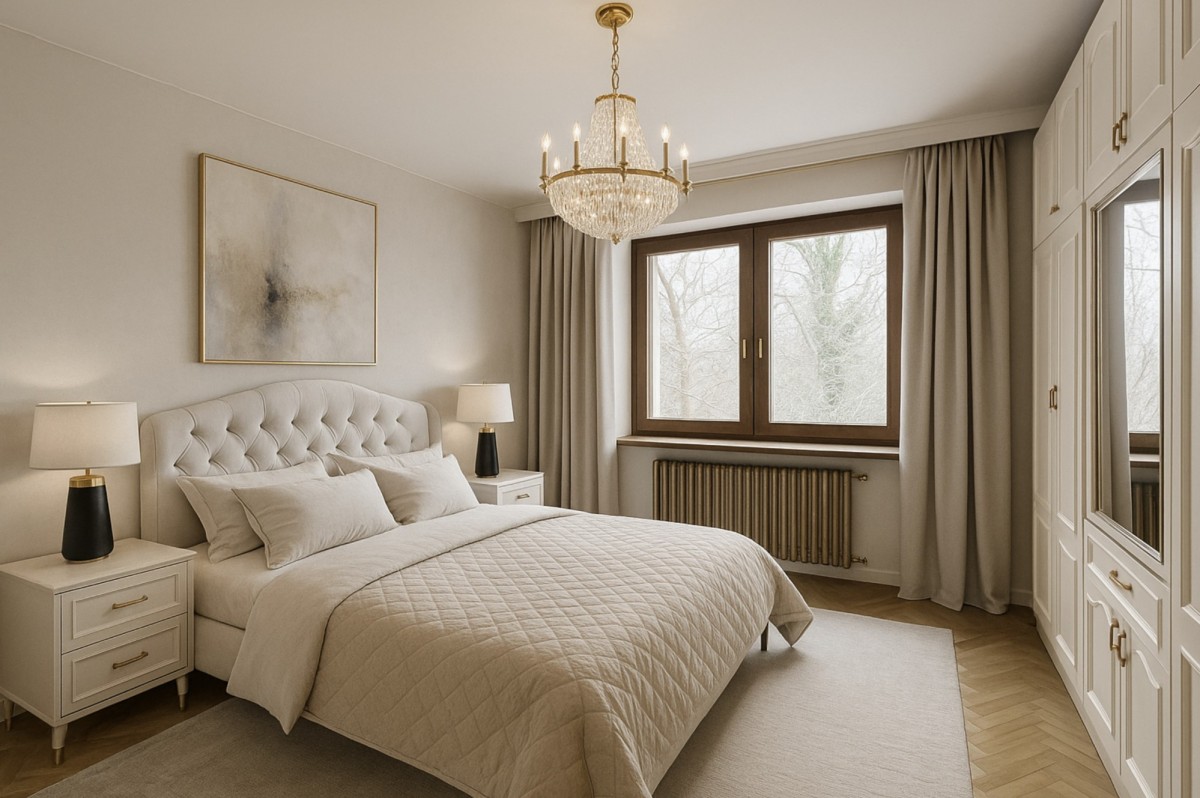 Wyjątkowa, kameralna przestrzeń : idealna jako sypialnia typu master z własną, prywatną łazienką (łącznie ~18 m²).