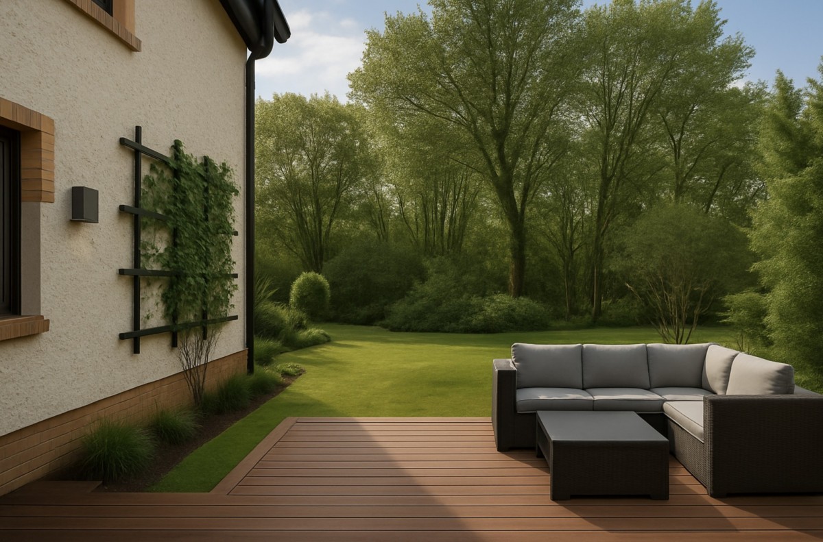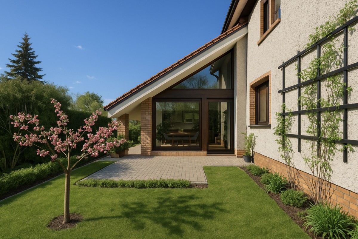 Narożne usytuowanie budynku zapewnia swobodę i daje potencjał do zaprojektowania unikalnego ogrodu.