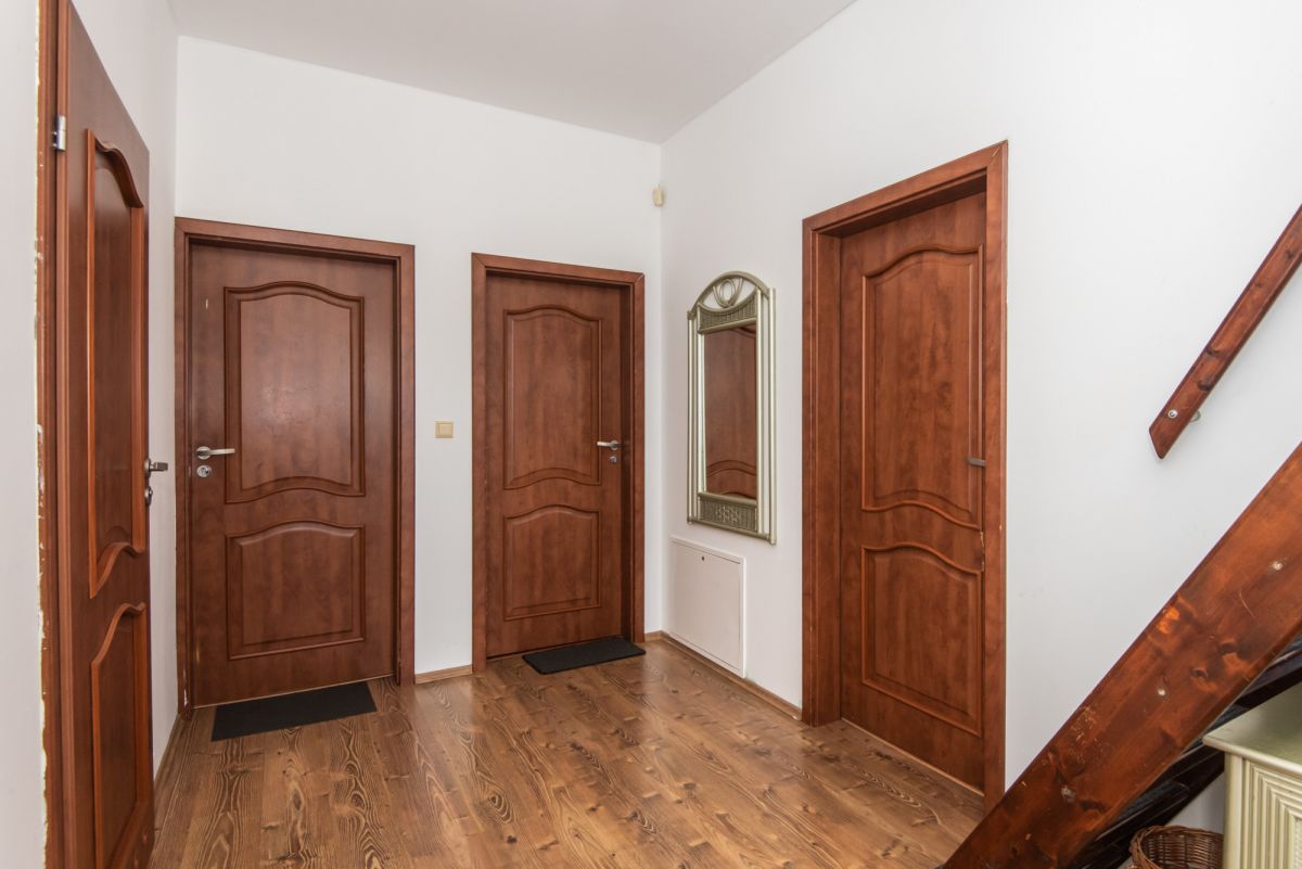- Wiatrołap z oddzielnym wejściem na piętro-6,61m2 i do piwnicy (kamienne schody), miejscem na szafę i szafkę na buty-4,47m2