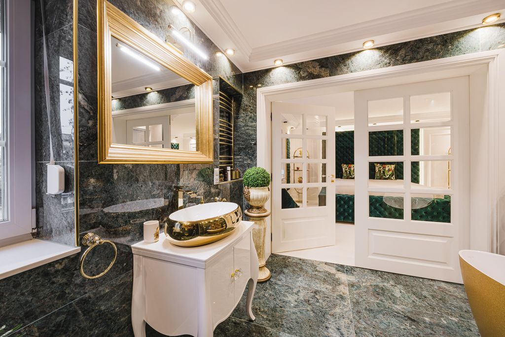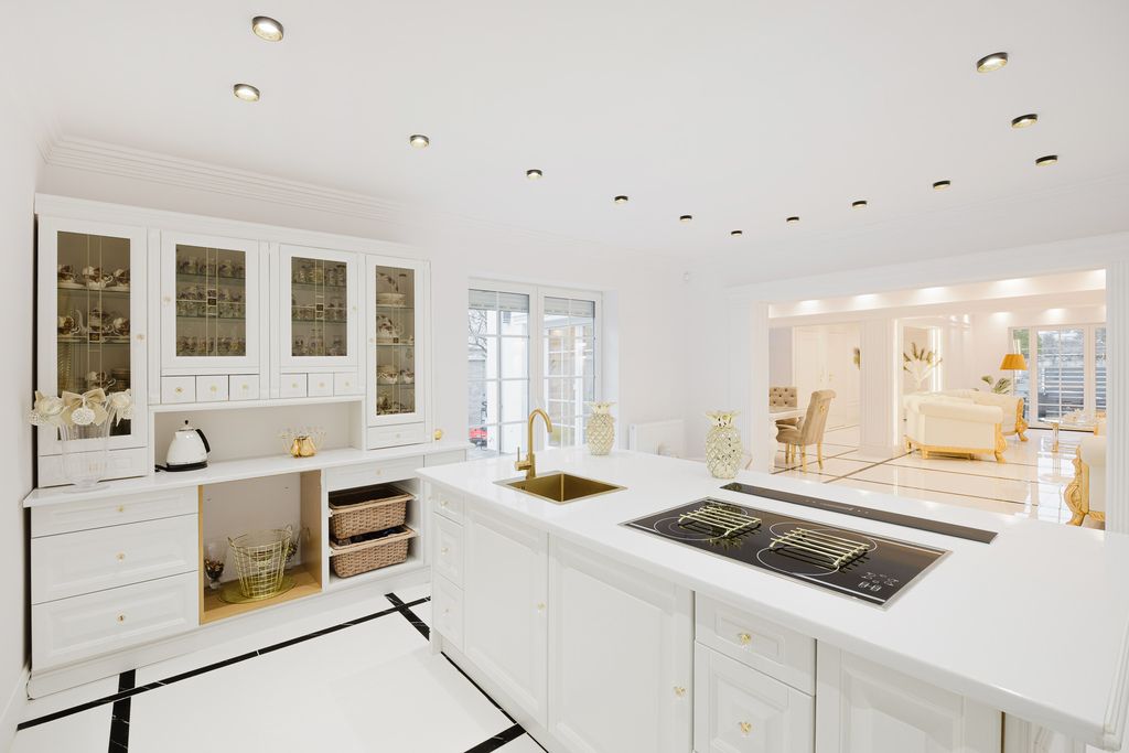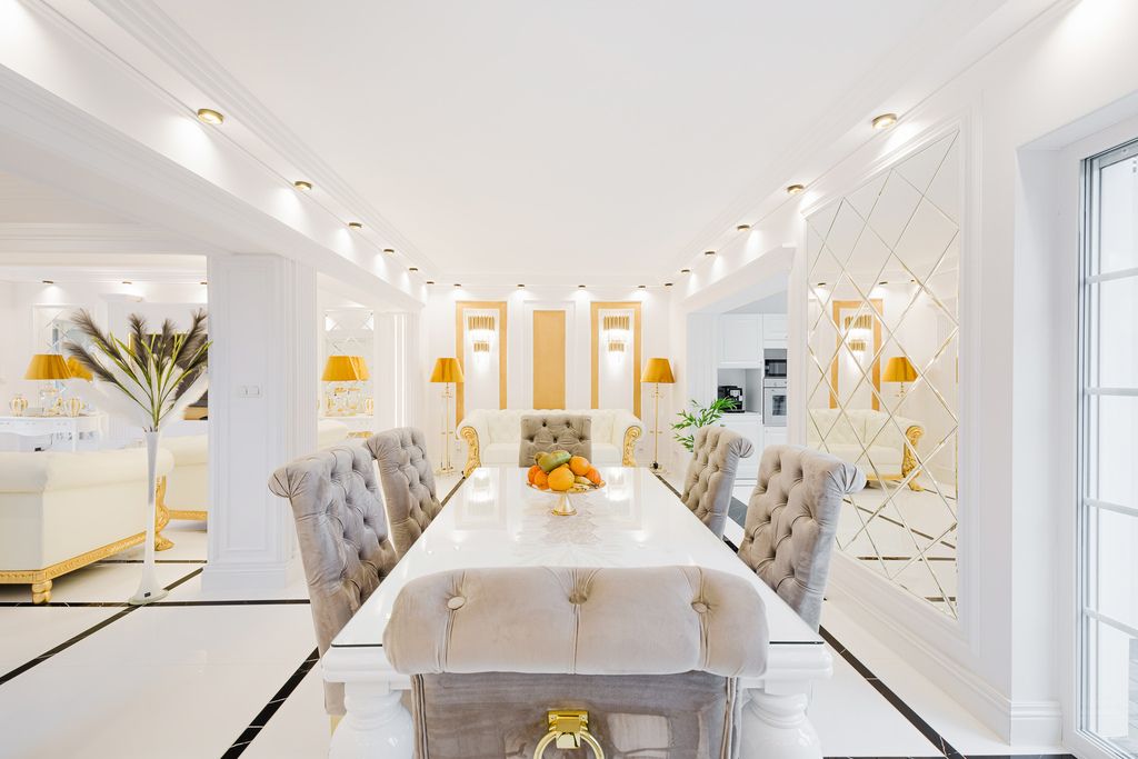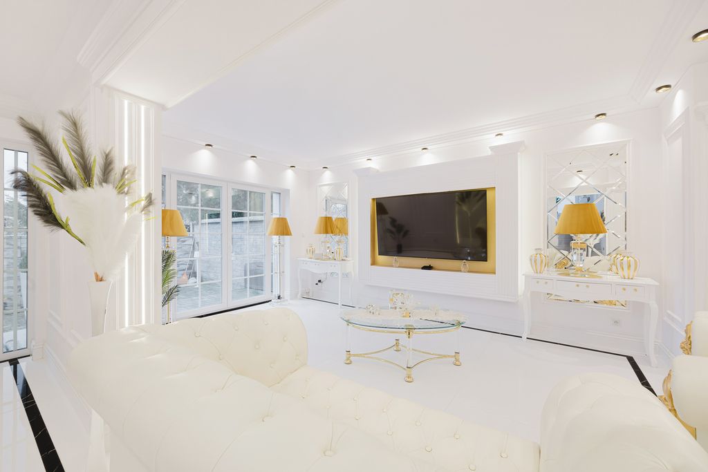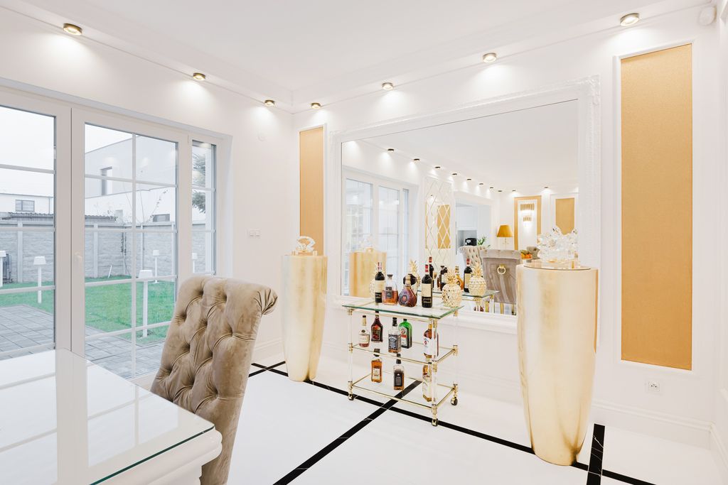 Nieruchomość została urządzona w wyjątkowym stylu glamour, a jej dodatkowym atutem domu jest garderoba z możliwością przerobienia jej na dodatkowy pokój.