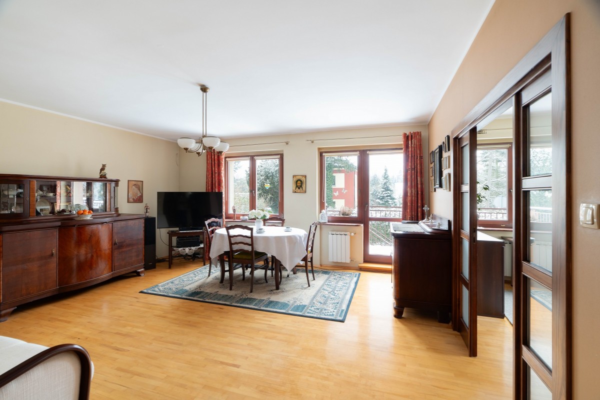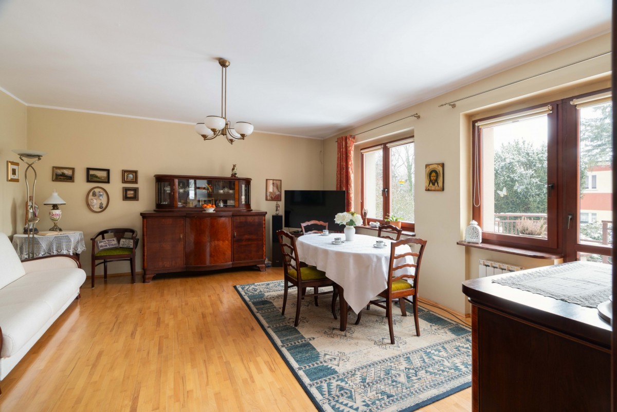 • przestronny, jasny salon (27 m2) z wyjściem na mniejszy taras (6 m2) od strony ogrodu