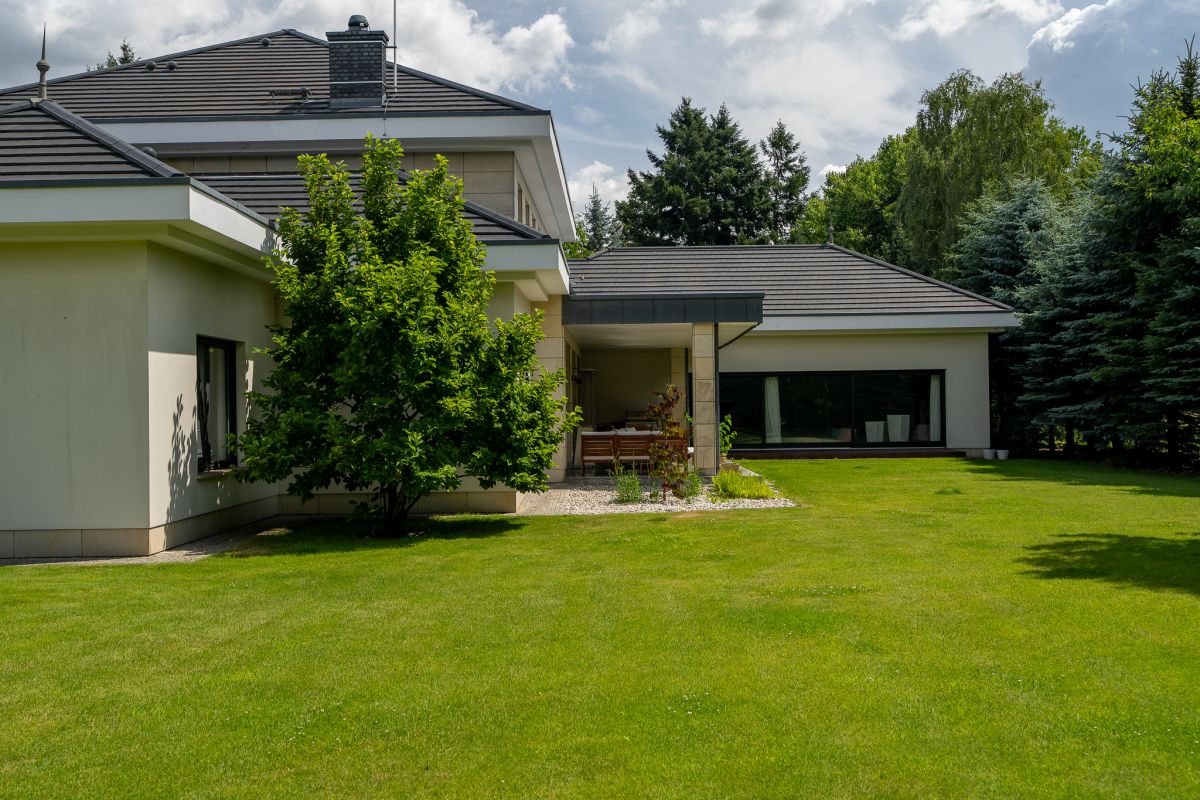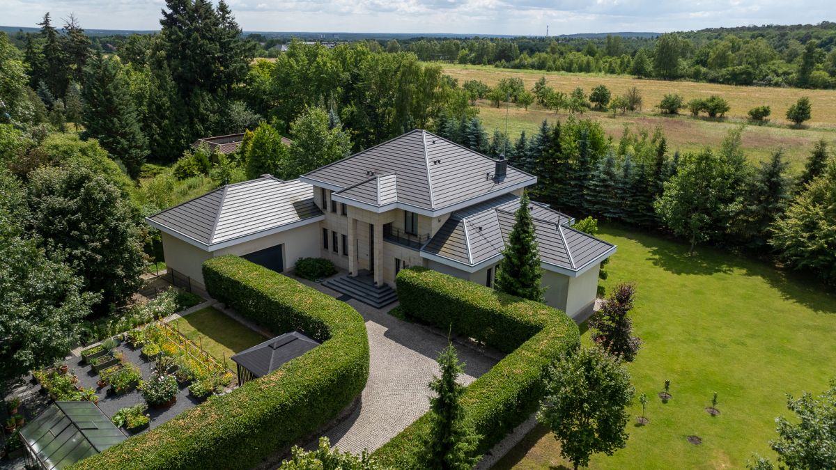 W otoczeniu kojącej zieleni, na 2064 m² doskonale położonej działce, stoi wyjątkowa rezydencja, która nie potrzebuje słów, by przyciągać uwagę.