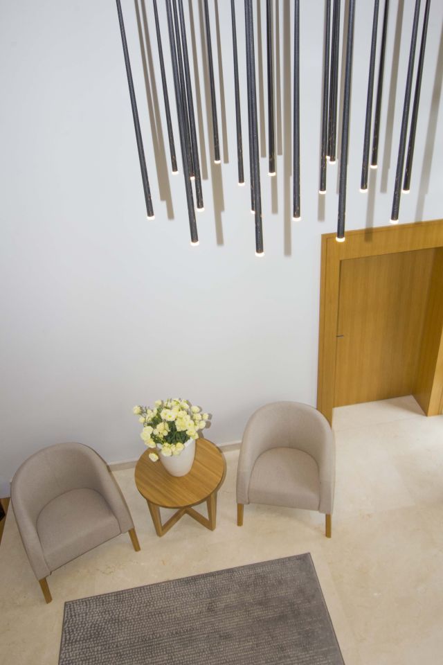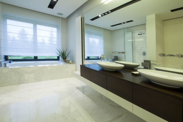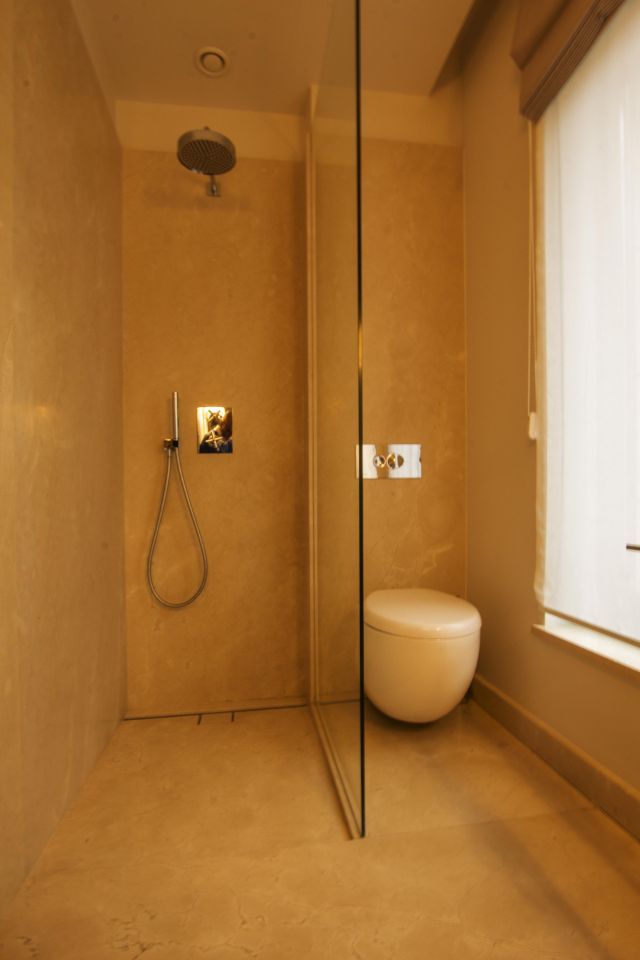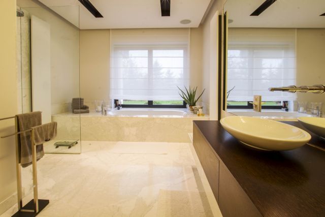 • Wyjątkowe wykończenie: marmur Crema Marfil, granit młodkowany, drewno-dąb, szkło, naturalny kamień piaskowiec
