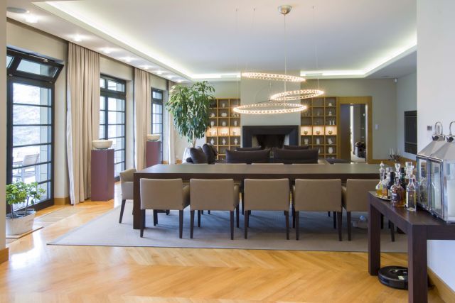 • Trzy sypialnie z garderobami, dwie łazienki, biblioteka