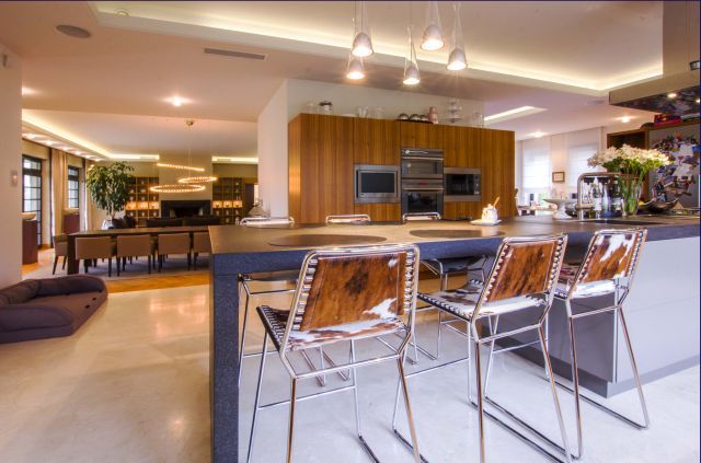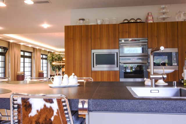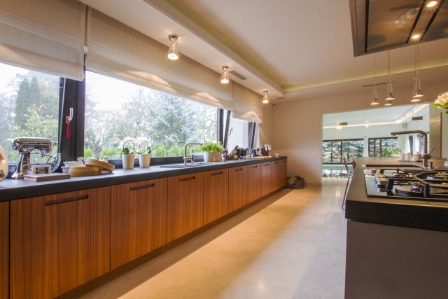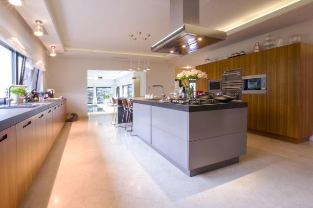 • Kuchnia z pełnowymiarowym zapleczem z widokiem na wewnętrzny basen i strefę relaksu