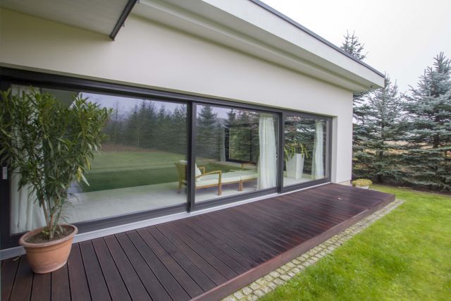 • Duże przeszklenia i widok na pięknie zagospodarowaną działkę