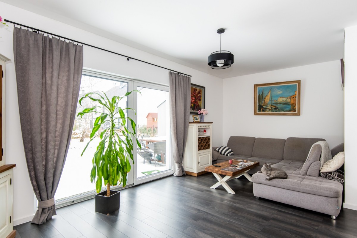 Dom prezentuje się bardzo schludnie i nowocześnie, co widać już od pierwszego spojrzenia - idealny wybór dla osób ceniących estetykę i funkcjonalność.