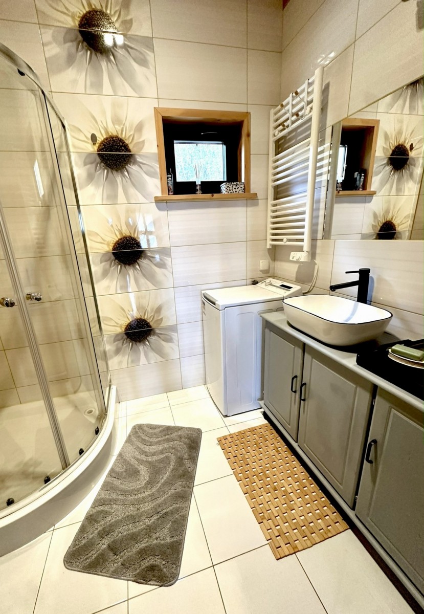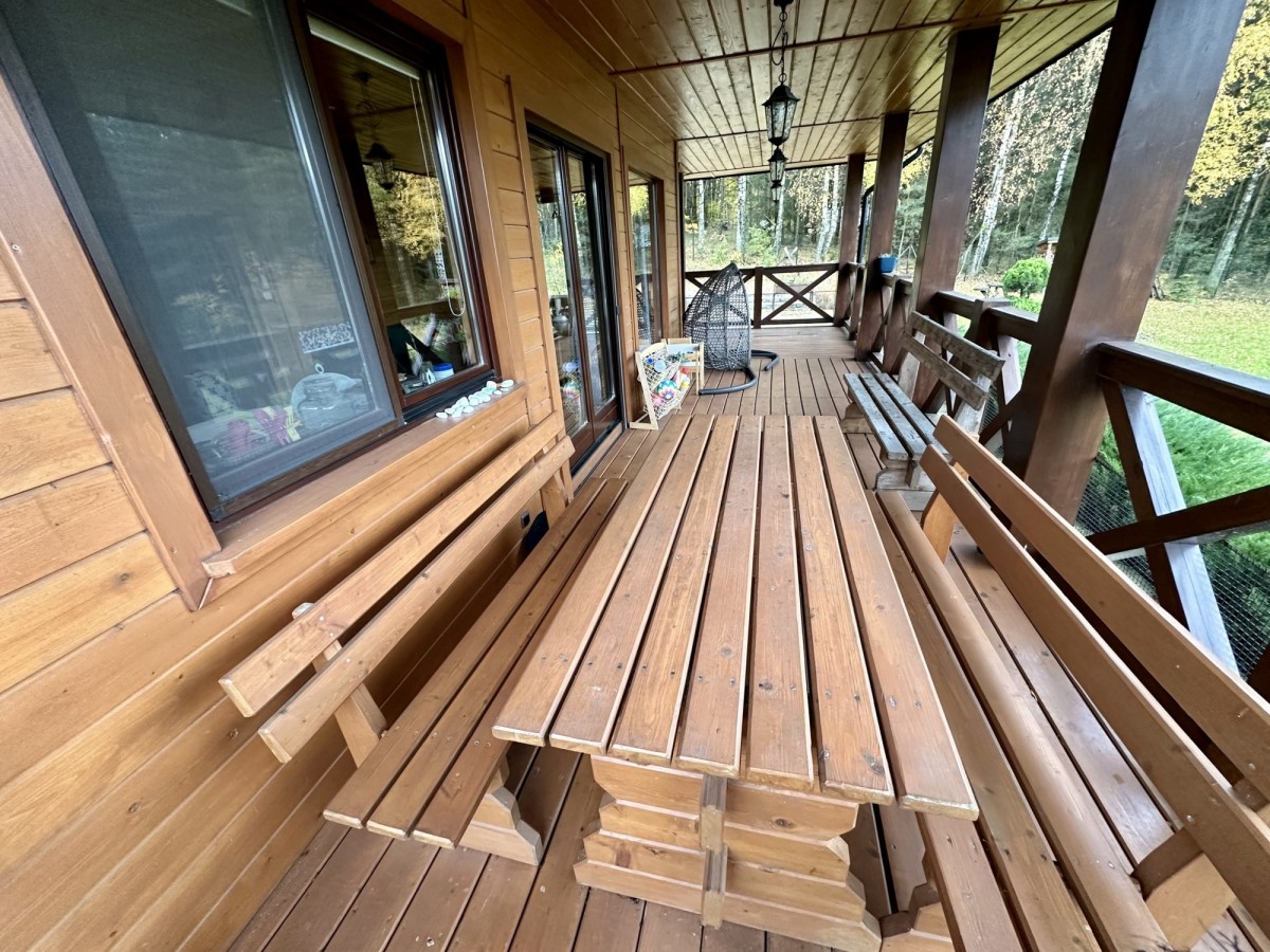 Atutem nieruchomości jest również duży, drewniany taras, stanowiący naturalne przedłużenie domu idealne miejsce na poranną kawę, spotkania z bliskimi lub wieczorny relaks wśród dźwięków natury.