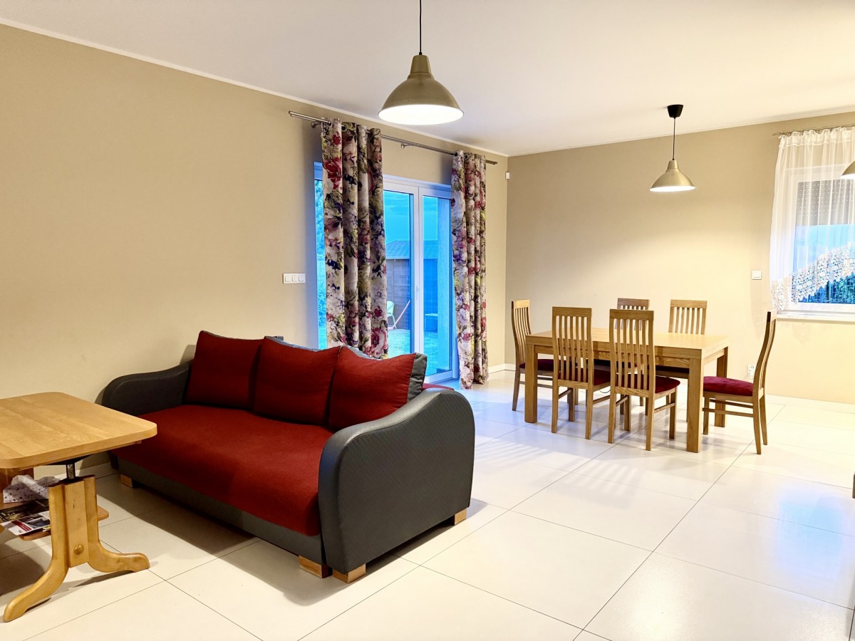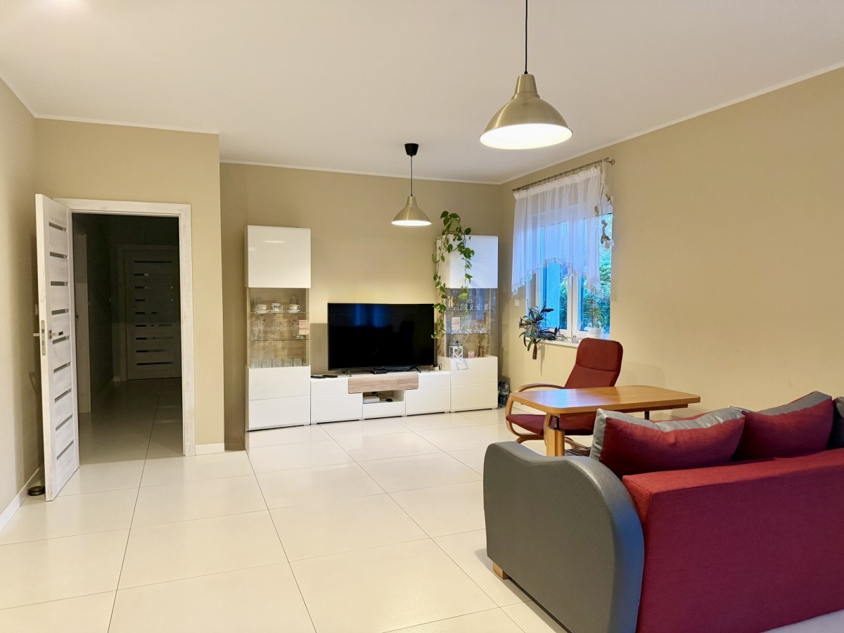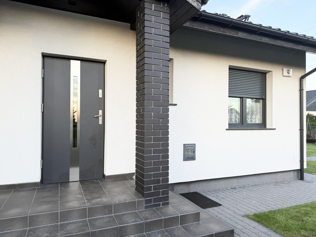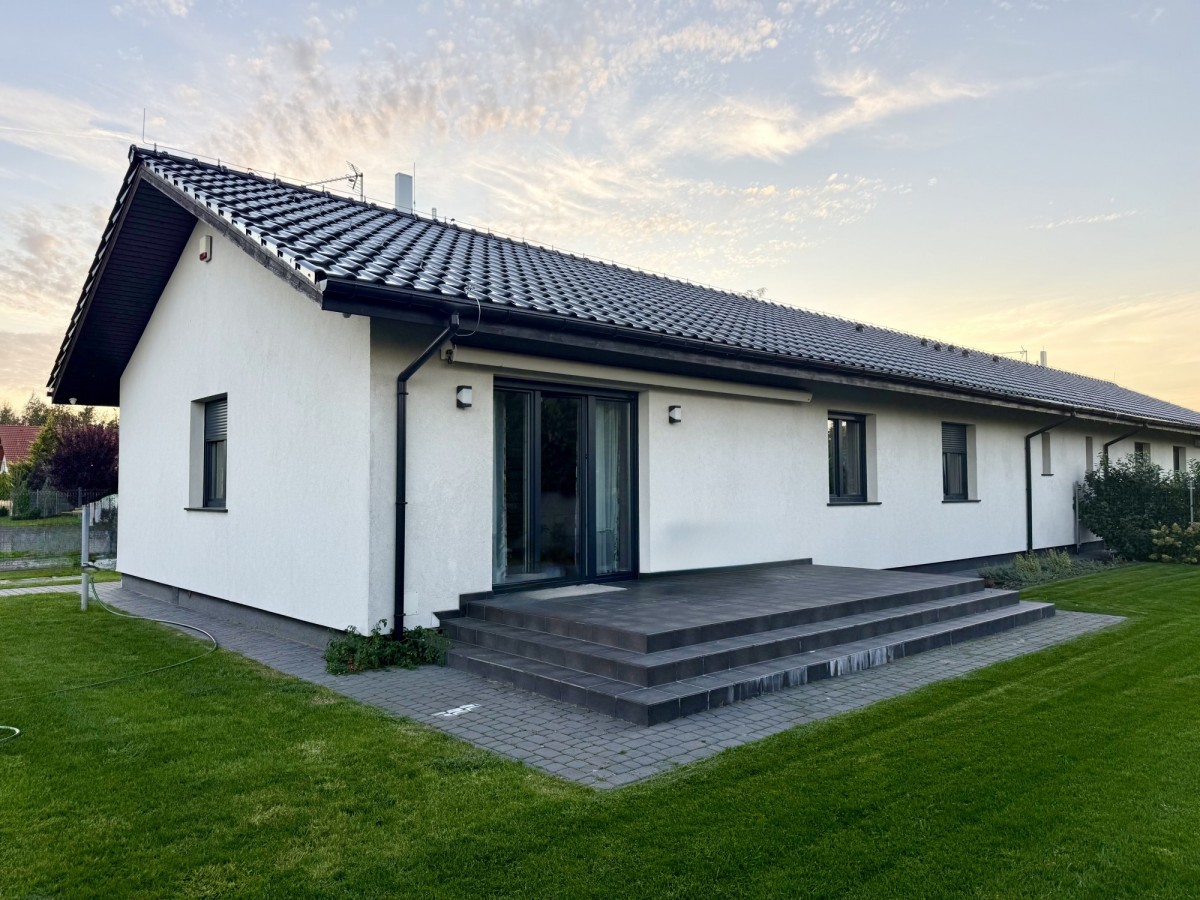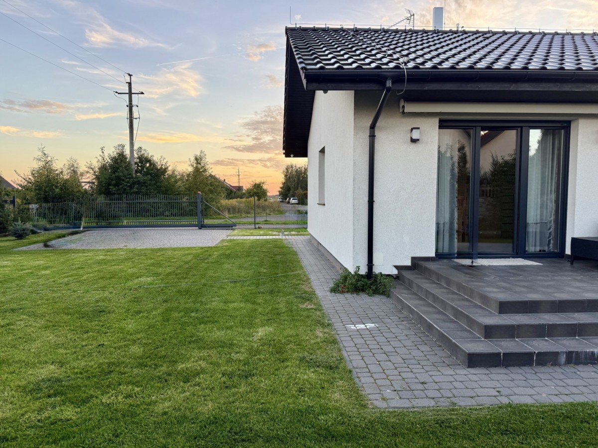 Parterowy dom w zabudowie bliźniaczej na dużej działce 700 m2, oddany w 2019 roku.