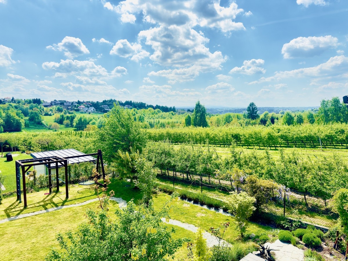Piękny dom w Sierczy na wzgórzu Chalakówki, położony na południowo - zachodnim stoku, tuż przy 2ha sadzie jabłkowym z widokiem na Babią Górę i mnóstwo zieleni. Dom położny jest 150m wyżej niż Kraków, niebo jest tutaj niebieskie, zjeżdżając do Krakowa widać różnicę. Duży, komfortowy, w którym możesz w pełni odetchnąć, ciesząc się spokojem i otoczeniem natury. Wybudowany w 2019r., dookoła nowa zabudowa i wszystko czego potrzebujesz do codziennego funkcjonowania.
