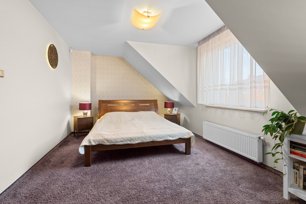 Dom posiada 2 łazienki w tym jeden duży pokój kąpielowy; 3 przytulne sypialnie, główna sypialnia posiada własną przestronną garderobę. Dom posiada garaż w bryle budynku oraz miejsca parkingowe.