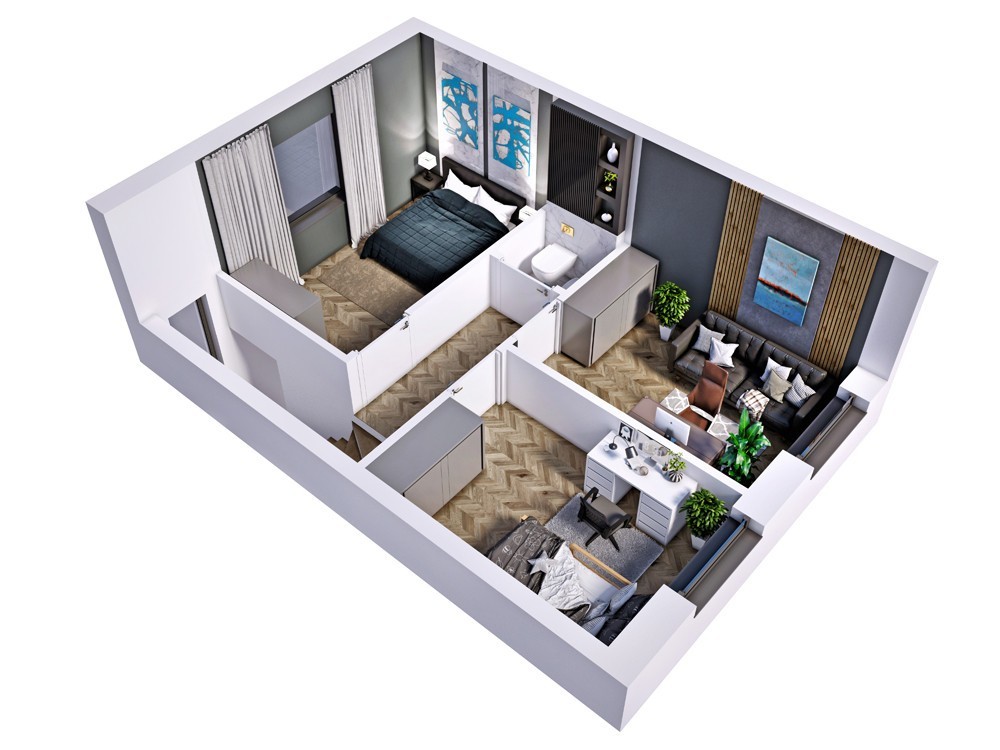 Mimo niedużej powierzchni lokale zostały bardzo funkcjonalnie zaprojektowane a na 66m2 powierzchni użytkowej wydzielono: