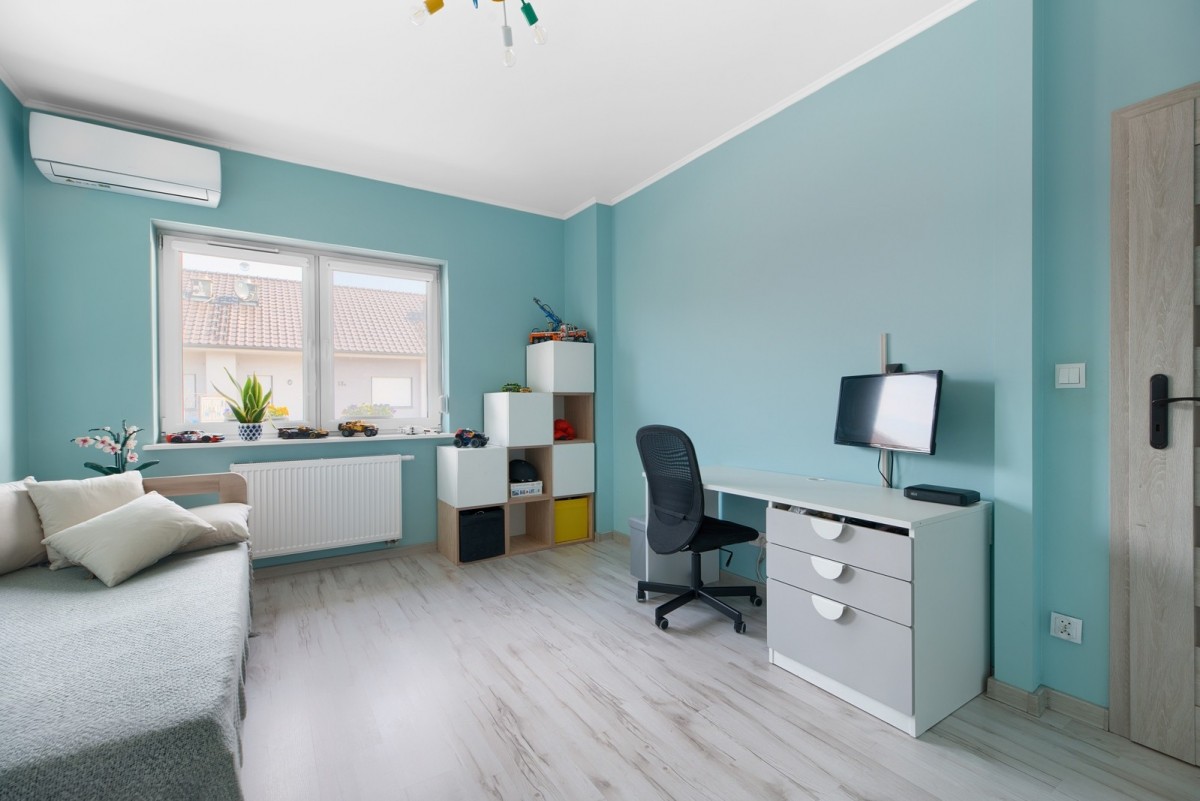 Nieruchomość wyposażona jest w klimatyzację. Klimatyzatory typu split z funkcjami chłodzenia oraz grzania znajdują się w salonie oraz większym pokoju.