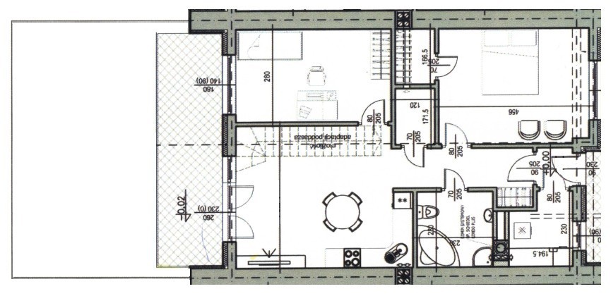 Do dyspozycji jest również poddasze z wejściem za pomocą wyłazu. Można je zaadaptować jako dodatkowe pomieszczenie. Powierzchnia całkowita poddasza to około 30 m2, a jego wysokość w szczytowym punkcie wynosi około 2,7 m.