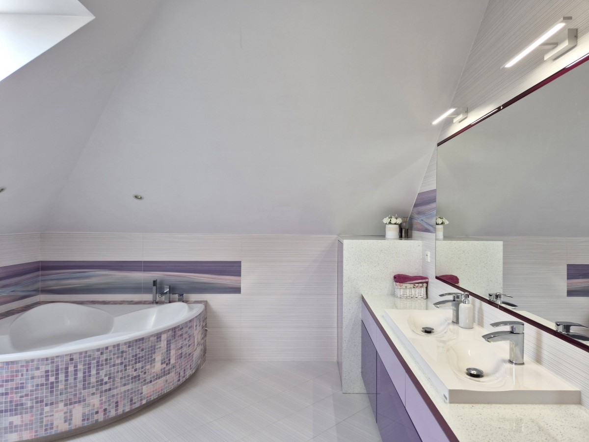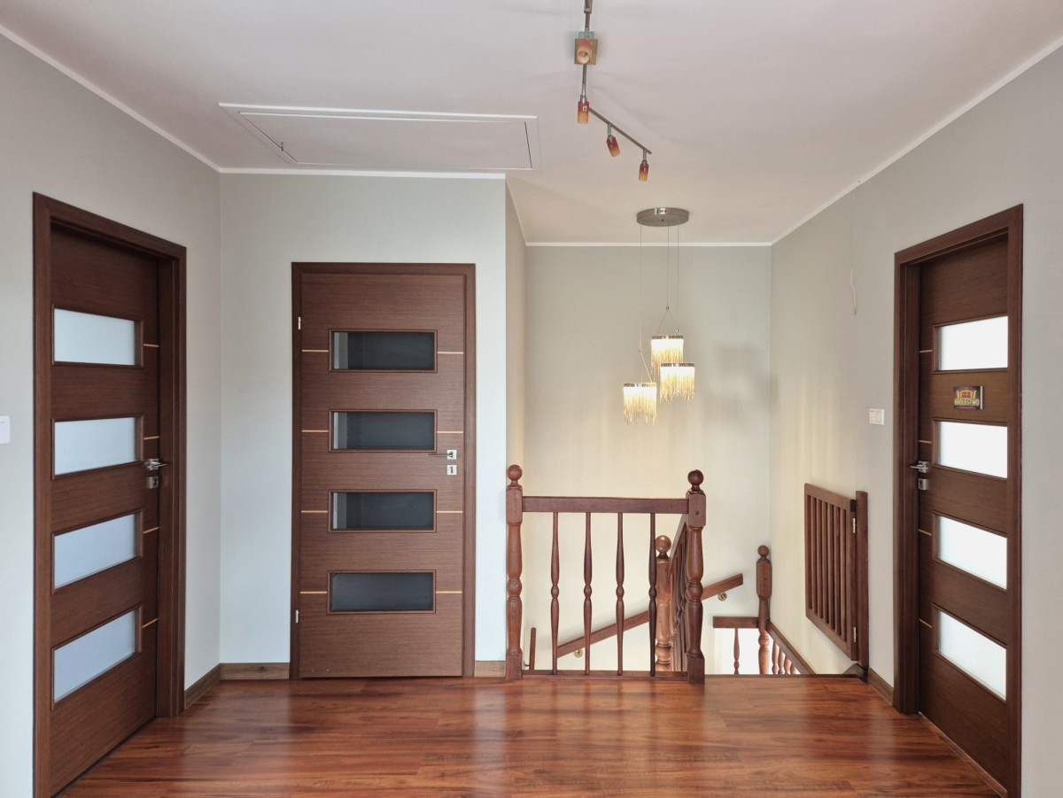 Na piętro prowadzą solidne schody z drewna merbau, które jest znane ze swojej wyjątkowej twardości i odporności na czynniki zewnętrzne. Na piętrze mamy trzy sypialnie (17, 21 i 22mkw), dużą łazienkę z wanną i prysznicem (17mkw), garderobę (8mkw) oraz przestronny hol (15mkw).