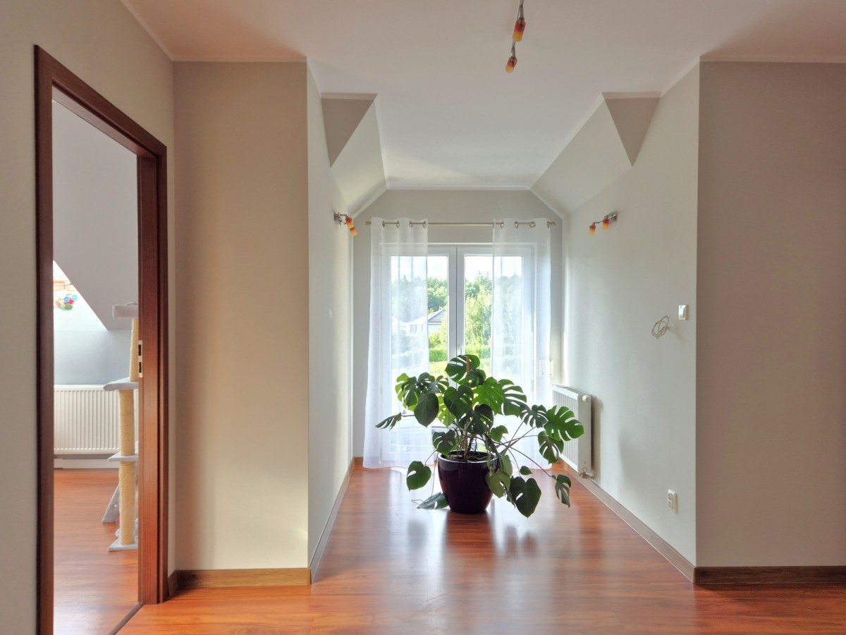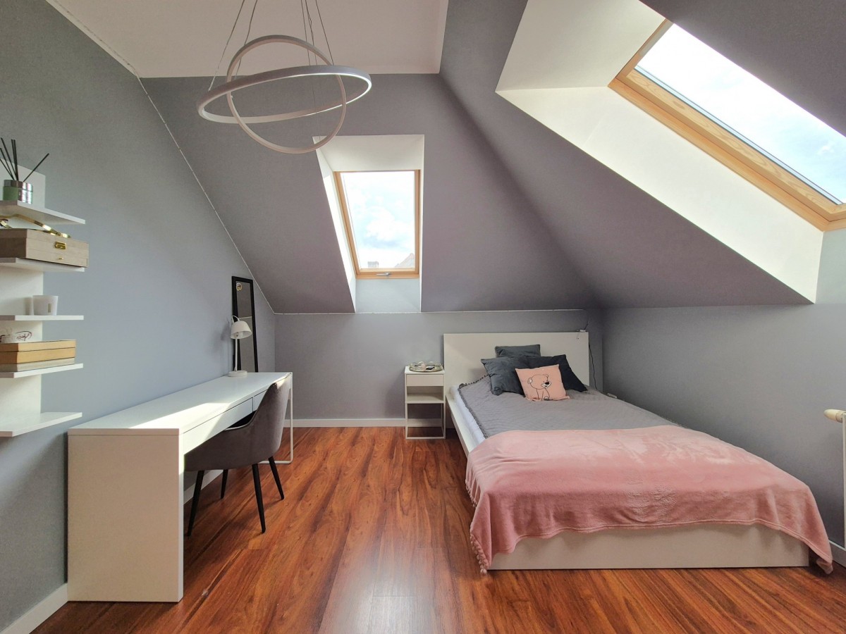 Strych z oknem, z wejściem w postaci schodów kasetowych opuszczanych z sufitu (około 30mkw).