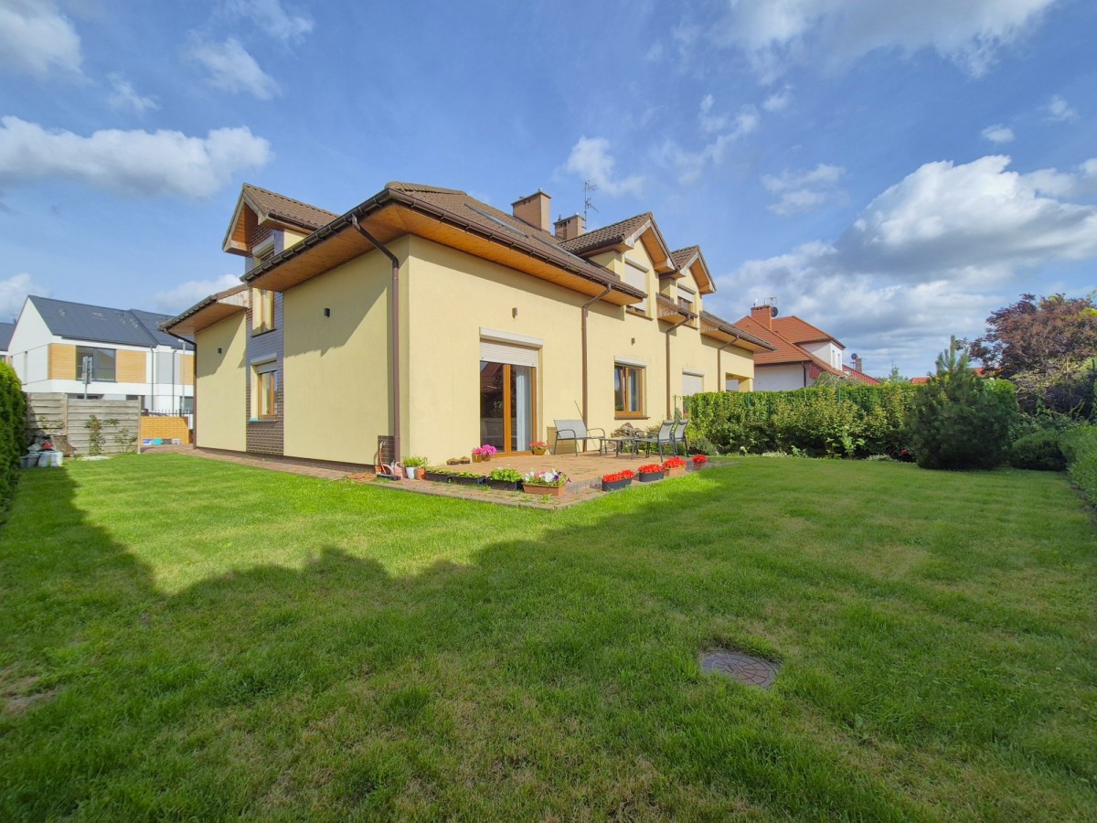 Z przyjemnością prezentujemy na sprzedaż bardzo zadbany i przestronny dom w zabudowie bliźniaczej o powierzchni użytkowej 175mkw (całkowita 220mkw), z czterema pokojami, 2 łazienkami, garderobą i garażem w bryle budynku, położony w jednej z najpopularniejszych dzielnic Szczecina, znajdujący się w spokojnej, zielonej okolicy z szybkim i wygodnym dojazdem do centrum miasta.