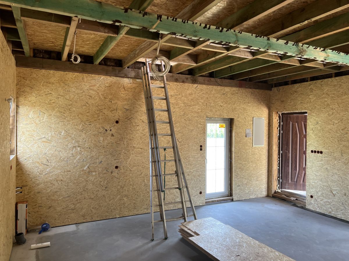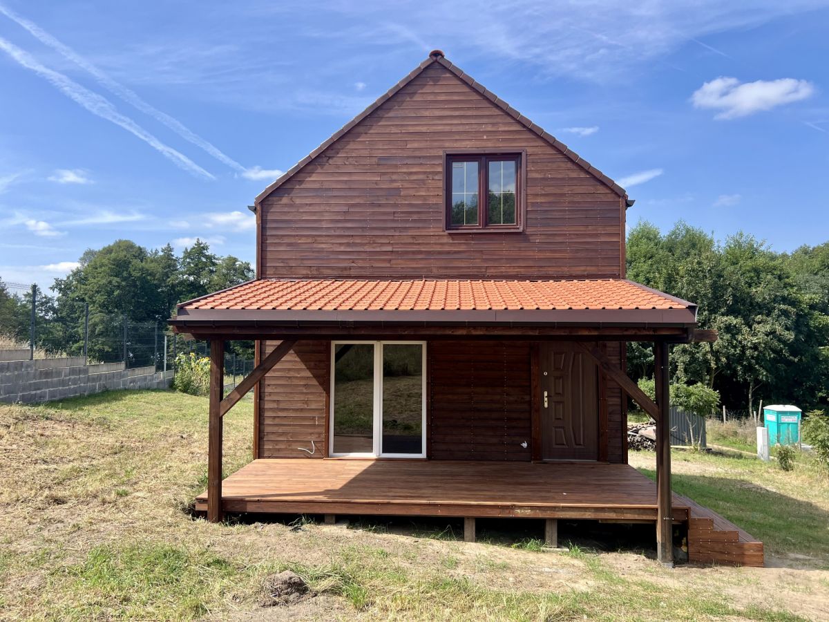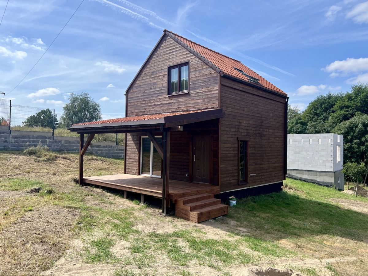 Budynek powstał w lipcu 2024 r. Jest w stanie do wykończenia. Wykonany w technologii drewnianej, docieplony wełną 20 cm. Dach jest podwójnie izolowany, pokryty dachówką ceramiczną. Wewnątrz rozprowadzone zostały instalacje elektryczna oraz wodna. Dodatkowo do dyspozycji jest zadaszony taras wykonany z modrzewia syberyjskiego.