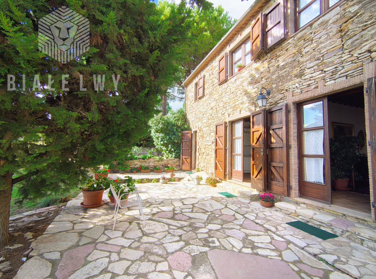 - Budynki gospodarcze (łącznie ok. 335 m²): w tym duży aneks rolniczy z biurem, magazynem oleju i łazienką oraz dwa kamienne aneksy przekształcone w trzy dwupokojowe mieszkania.