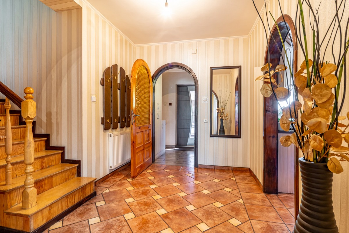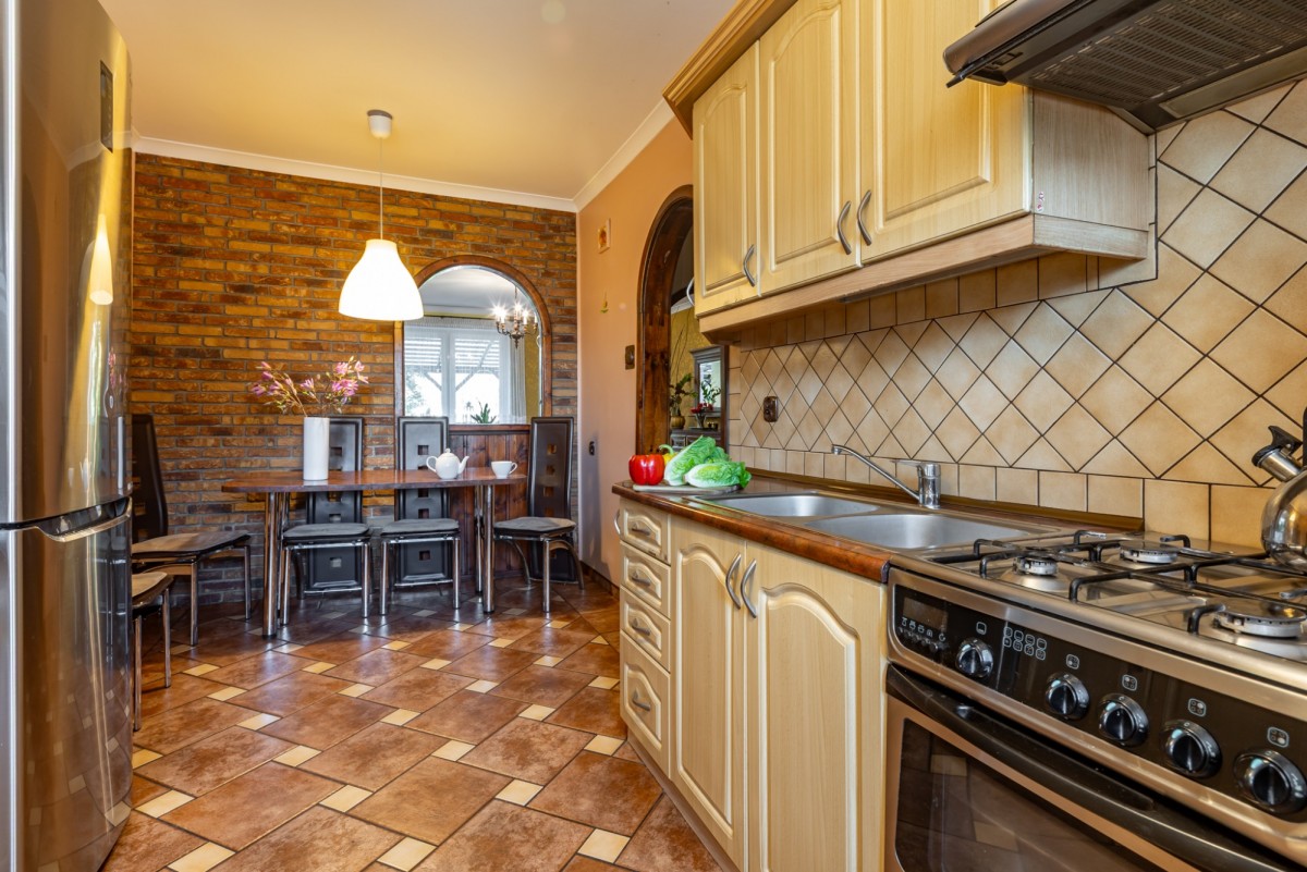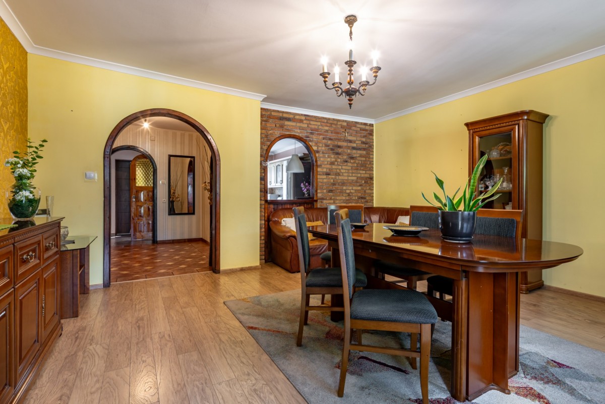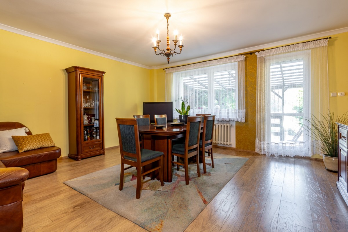 - Dodatkowe wejścia do domu (od strony ogrodu) oraz oddzielny wjazd z dużą bramą zwiększają funkcjonalność posesji.
