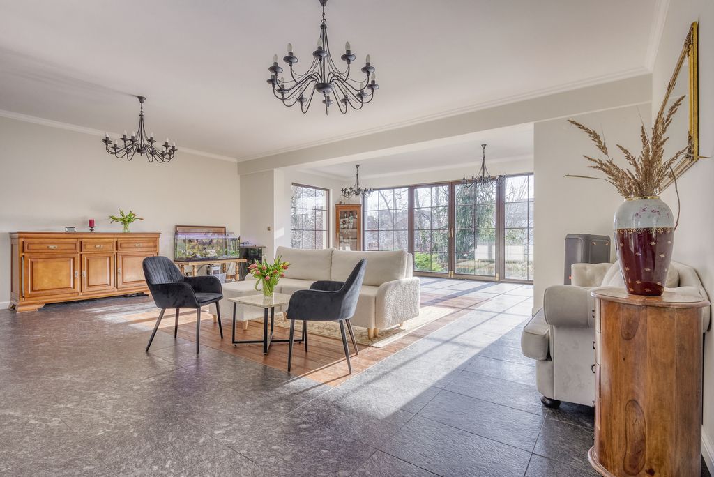 -Przestronny salon z kominkiem z wyjściem na ogród (również ze strony kuchni).