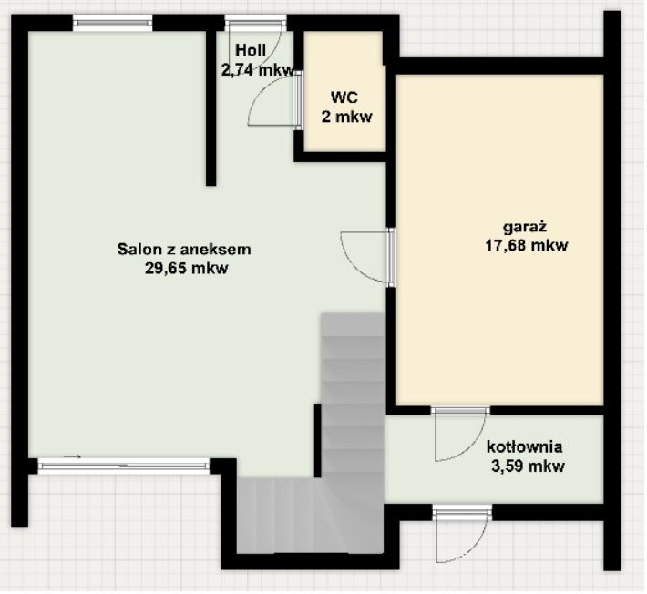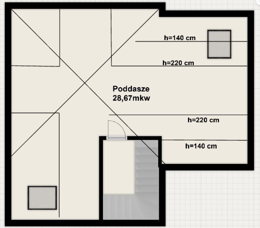 - duże i przestronne poddasze do dowolnej aranżacji, prowadzą na nie pełne betonowe schody.