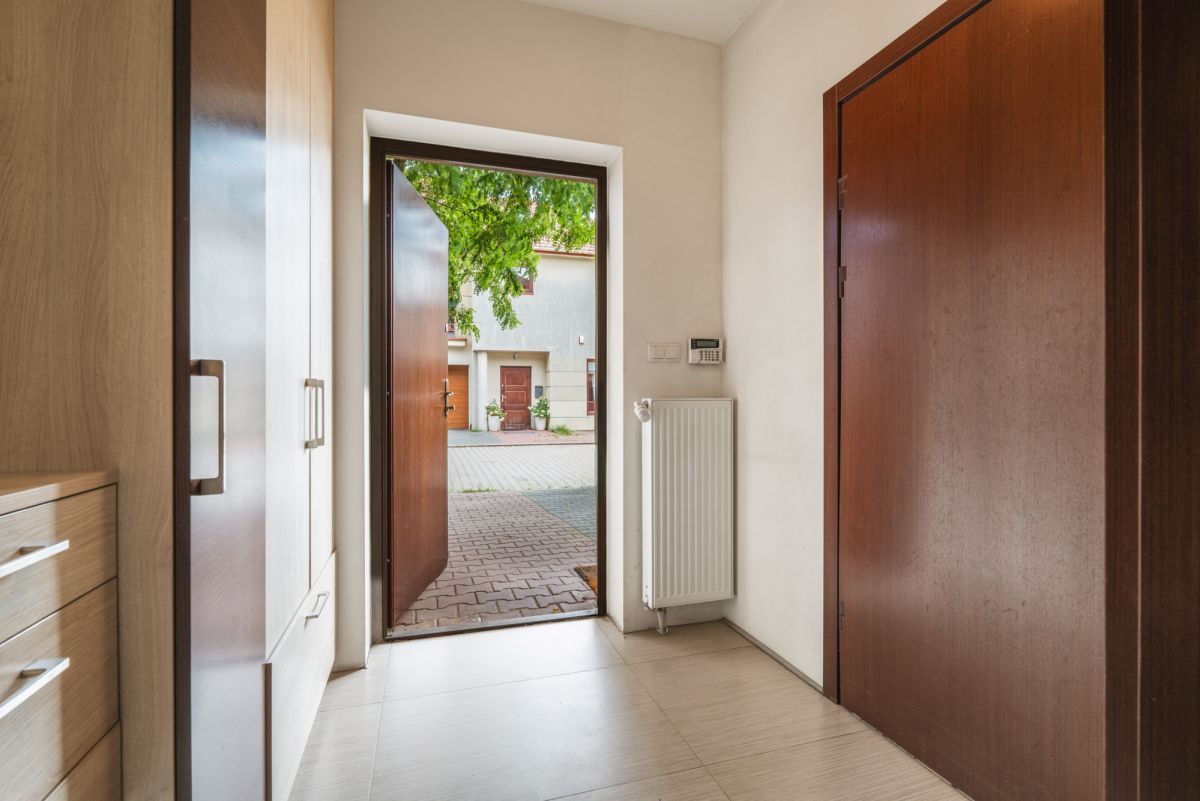 Komfort i bezpieczeństwo zapewnia nowoczesne ogrzewanie gazowe z piecem wymienionym w 2023 roku. W całym budynku zamontowano drewniane okna z okuciami antywłamaniowymi oraz klamki z funkcją blokady, które pełnią również rolę zabezpieczenia dla dzieci. Dodatkowo dom wyposażony jest w system alarmowy z możliwością wykupienia abonamentu na profesjonalny monitoring.
