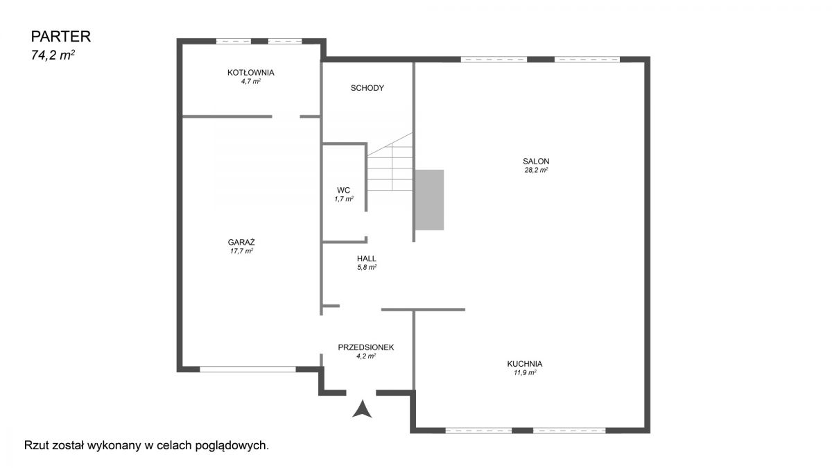 - garaż jednostanowiskowy (17,7 m²), wbudowany w bryłę domu, z bezpośrednim wejściem do domu przez wiatrołap,