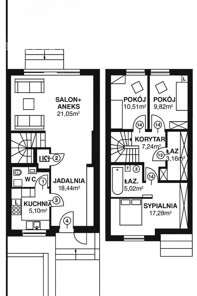 - 3 niezależne sypialnie (17,28 m2, 10,51 m2, 9,82 m2)