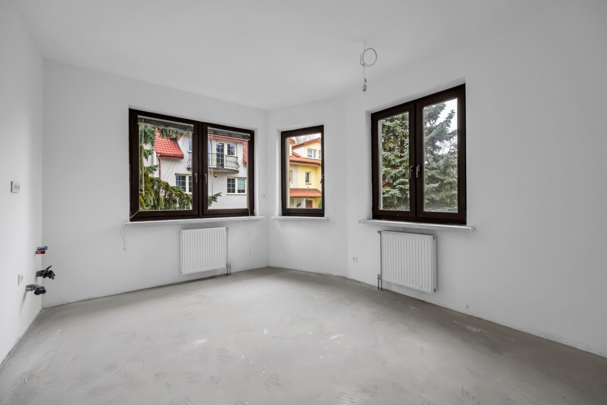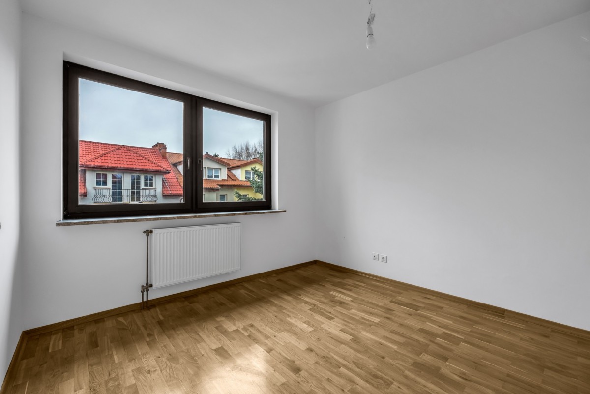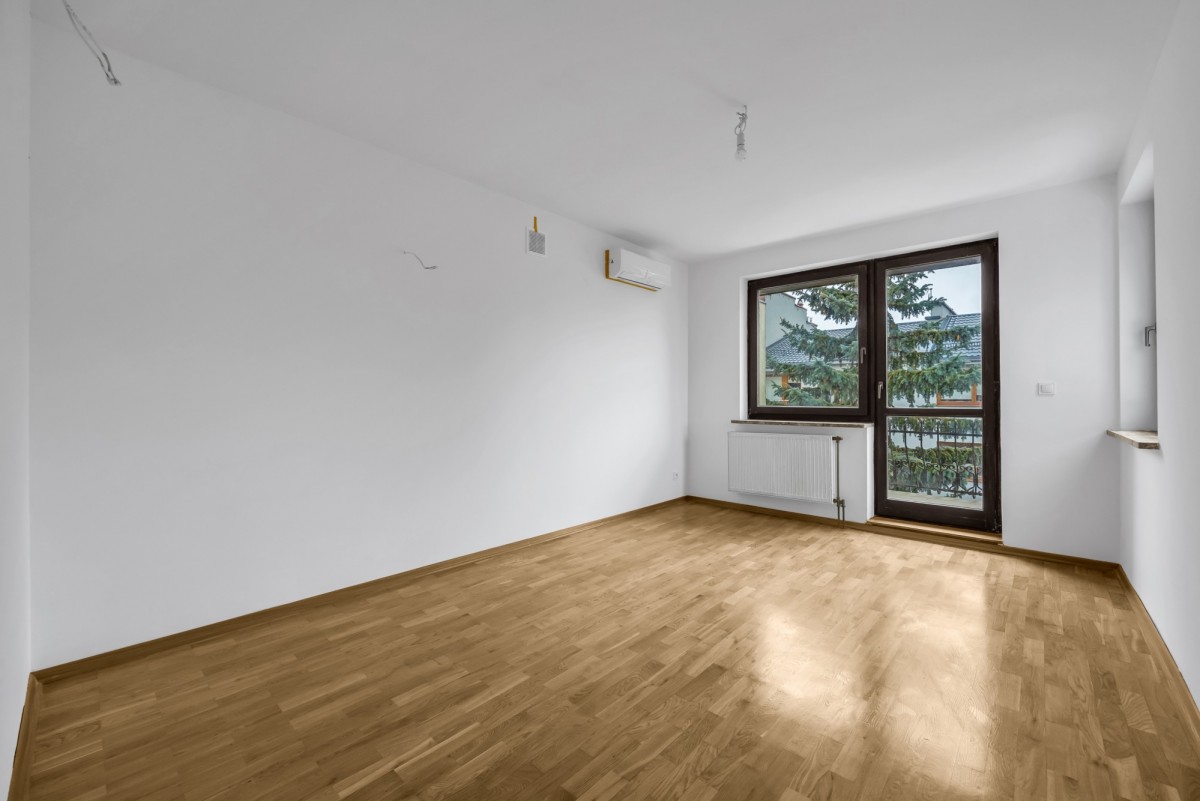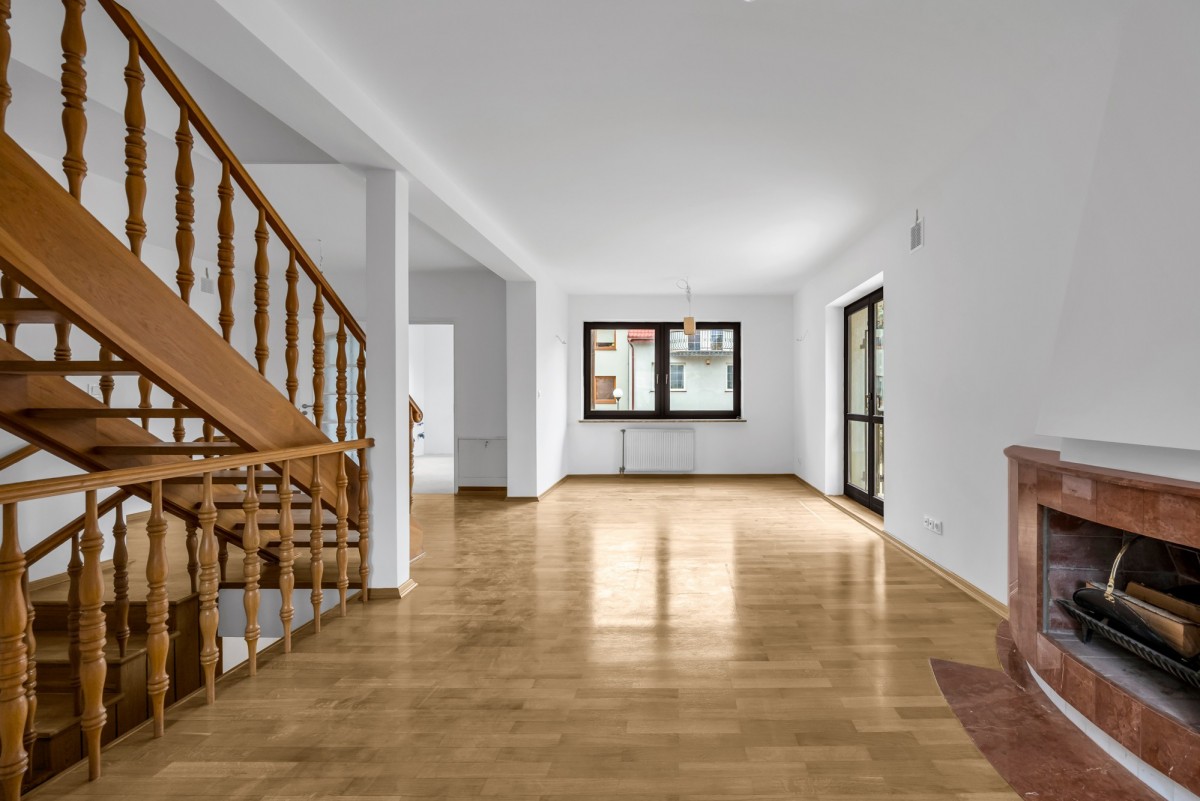 4 kondygnacje, garaż na 2 samochody + 2 miejsca parkingowe. Duży, słoneczny taras, ogródek, ogrodzenie z kutego metalu i cegły klinkierowej.