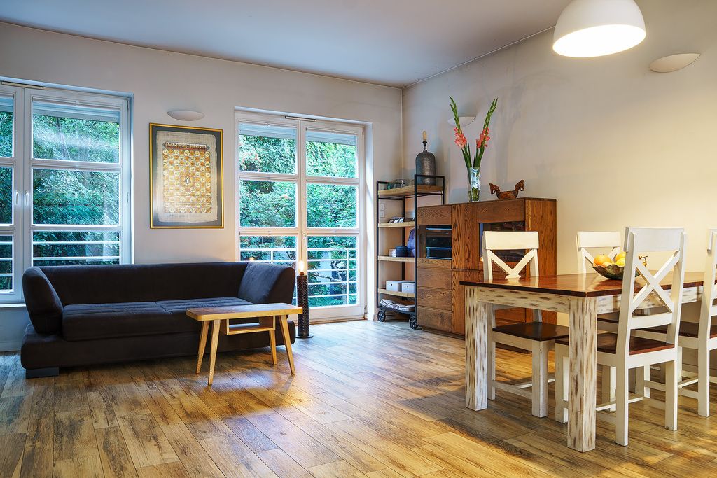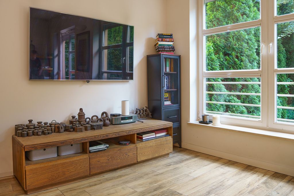 - Wysokie pomieszczenia (3 m) i duże okna – wnętrza pełne światła