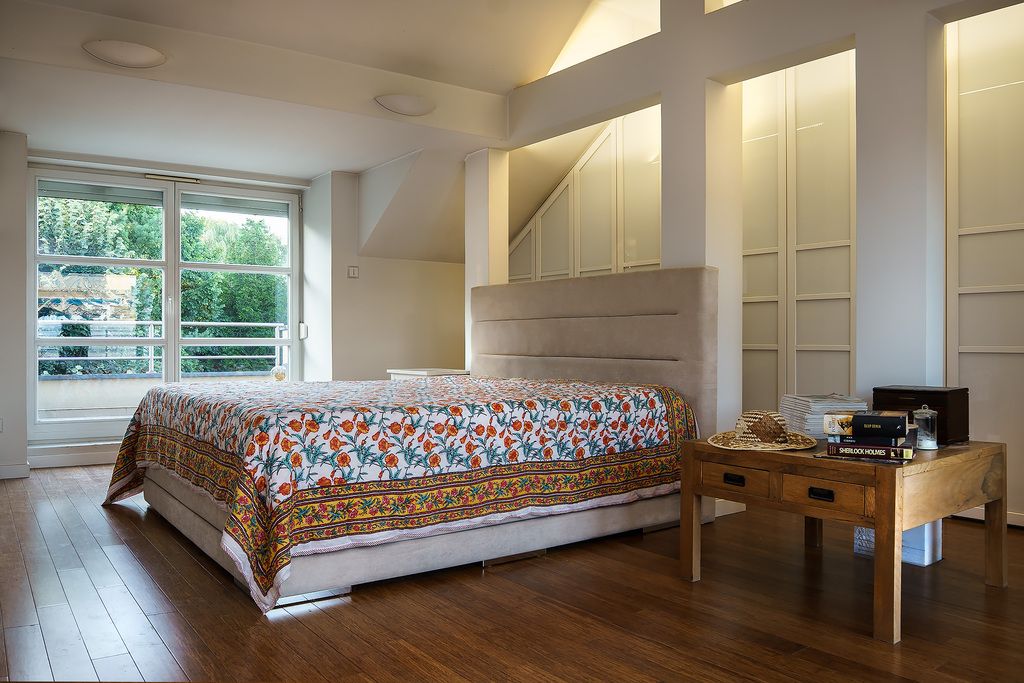 - 2 sypialnie (13 m² i 10,28 m²) – podłoga z bambusa, duże okna