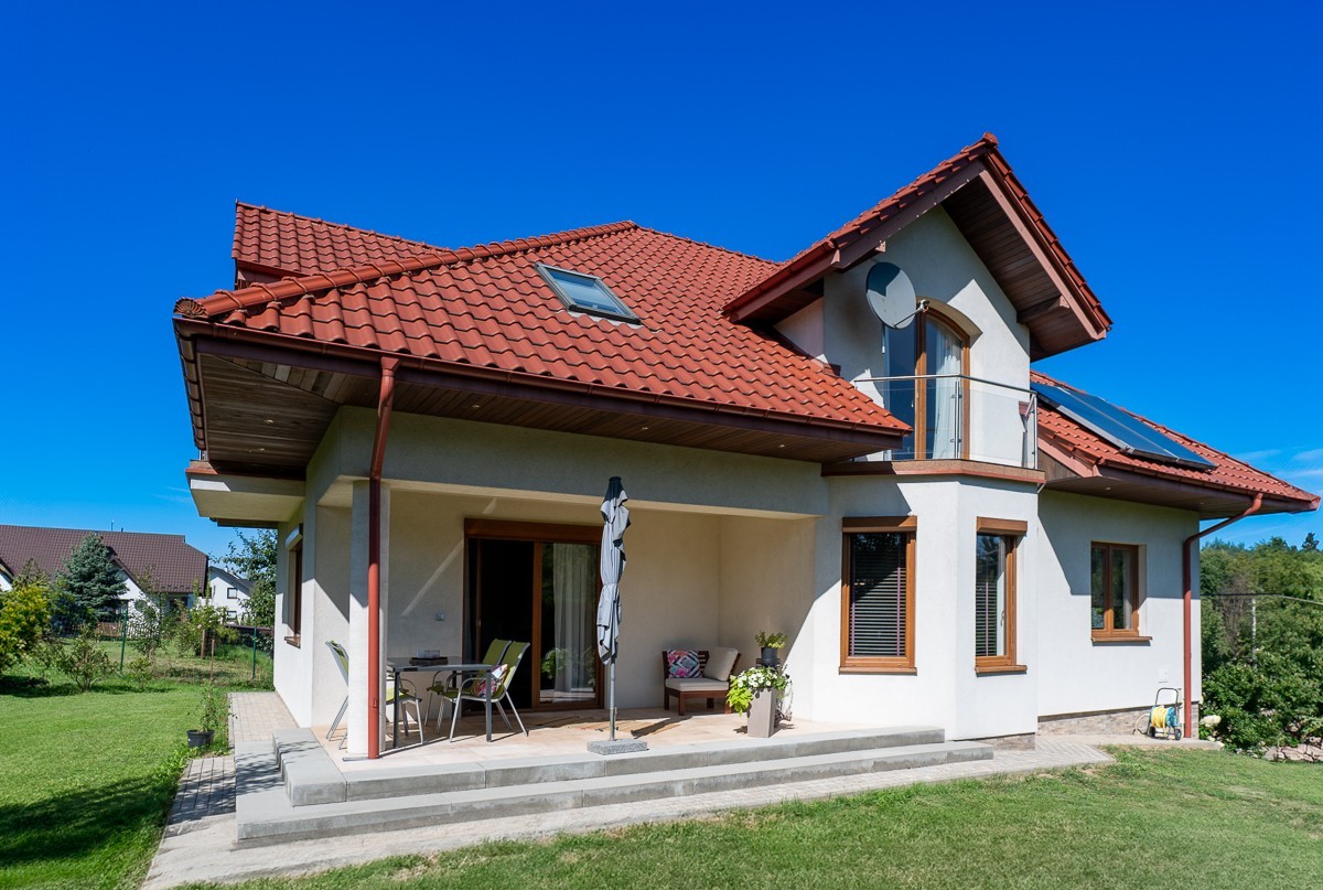 dach o konstrukcji drewnianej, kryty dachówką ceramiczną