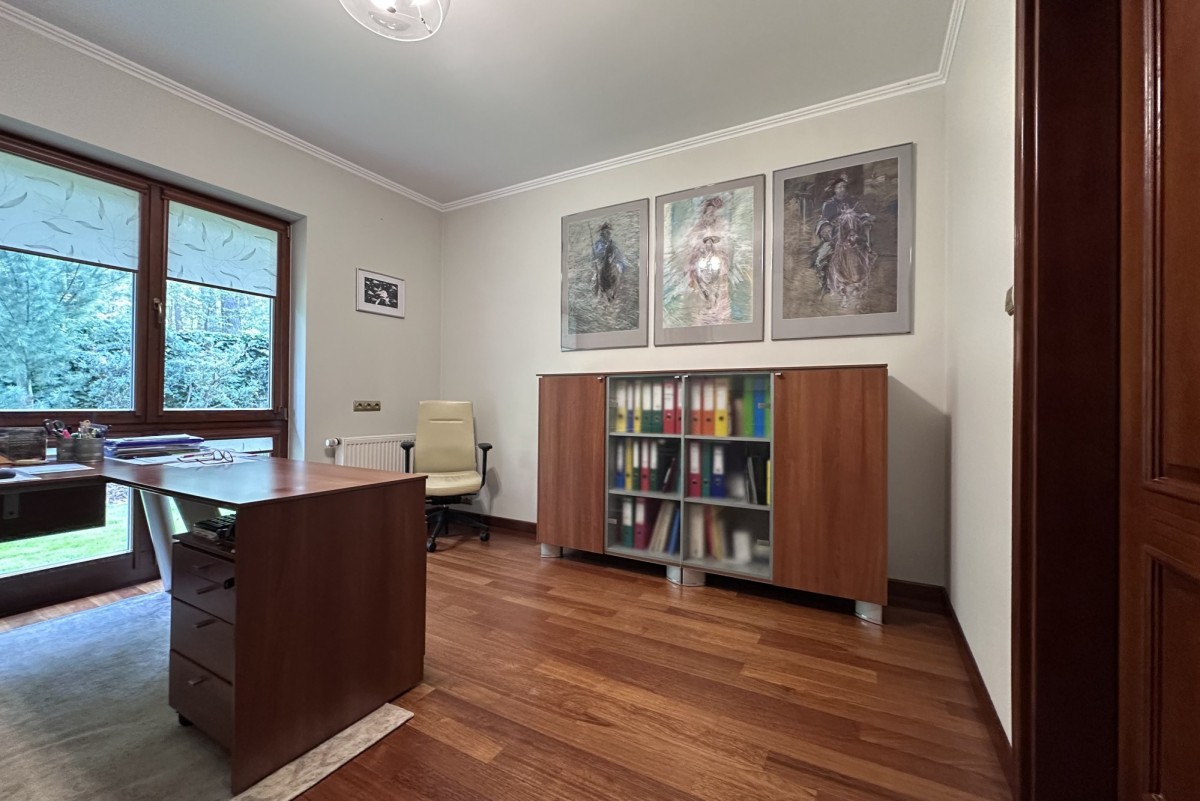 - Gabinet na parterze - elegancka przestrzeń do pracy w domowym zaciszu.