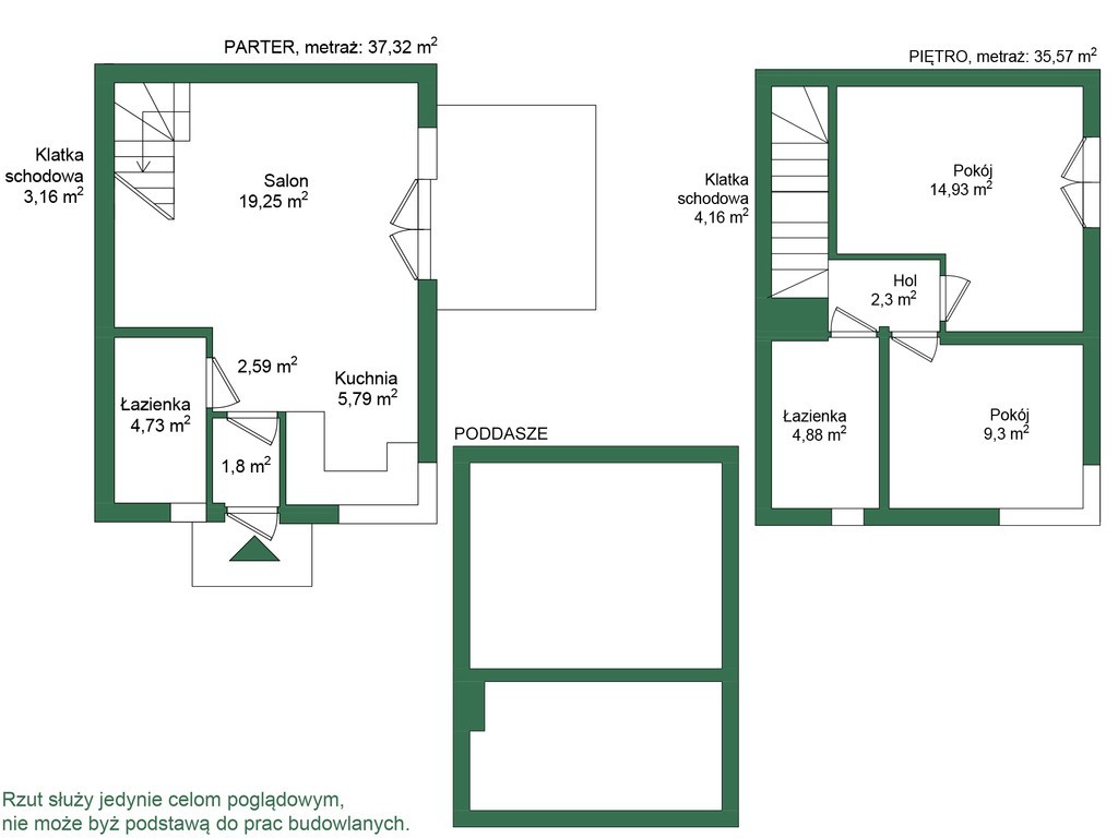 72,89 m2 powierzchnia użytkowa domu zaadoptowane poddasze (35m2 po podłodze) pokój wraz z łazienką