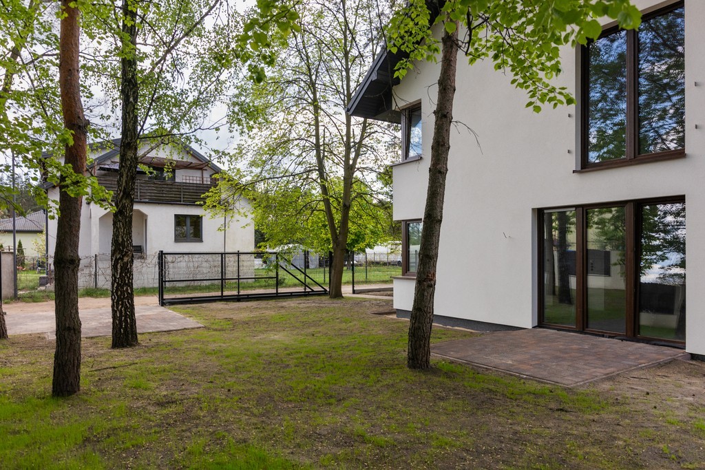Dwupoziomowy dom z dużym ogrodem zlokalizowany w cichym i zielonym miejscu. Dojazd do centrum Warszawy około 35 min trasą S8 lub koleją .