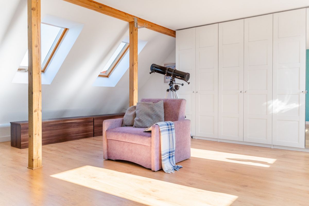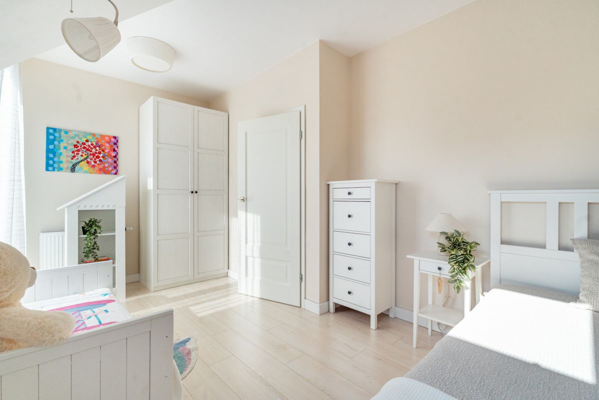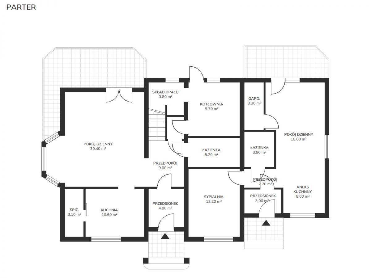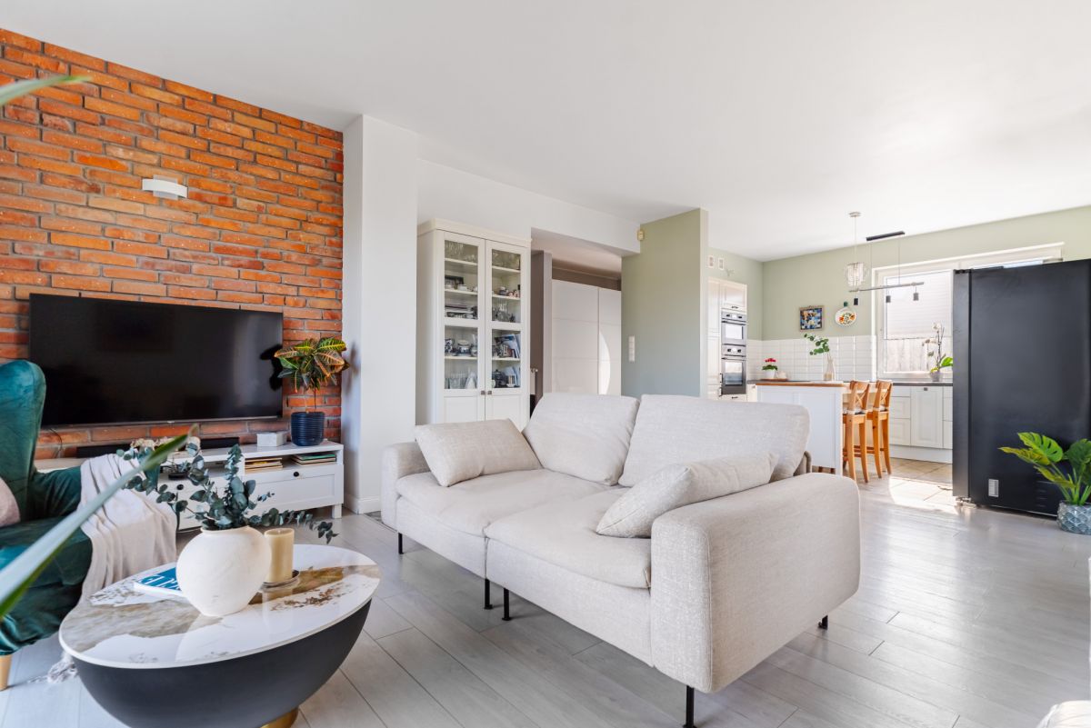 Niezależny apartament (51 m²) z własnym wejściem z zewnątrz stanowi idealne miejsce dla seniora, gości lub na prowadzenie działalności gospodarczej. Obecny układ składa się z salonu z kuchnią, sypialni oraz łazienki. Istnieje możliwość połączenia tej części z domem głównym, co pozwala na powiększenie głównej powierzchni mieszkalnej. Funkcjonalność podnoszą nowoczesne instalacje, w tym własna fotowoltaika oraz zmiękczacz wody, które obniżają koszty eksploatacji i zapewniają wyższy standard codziennego komfortu.