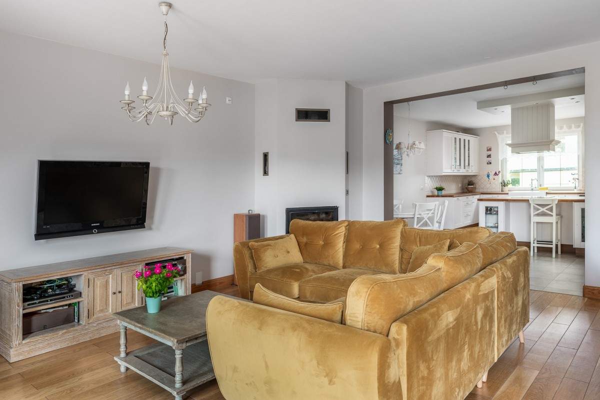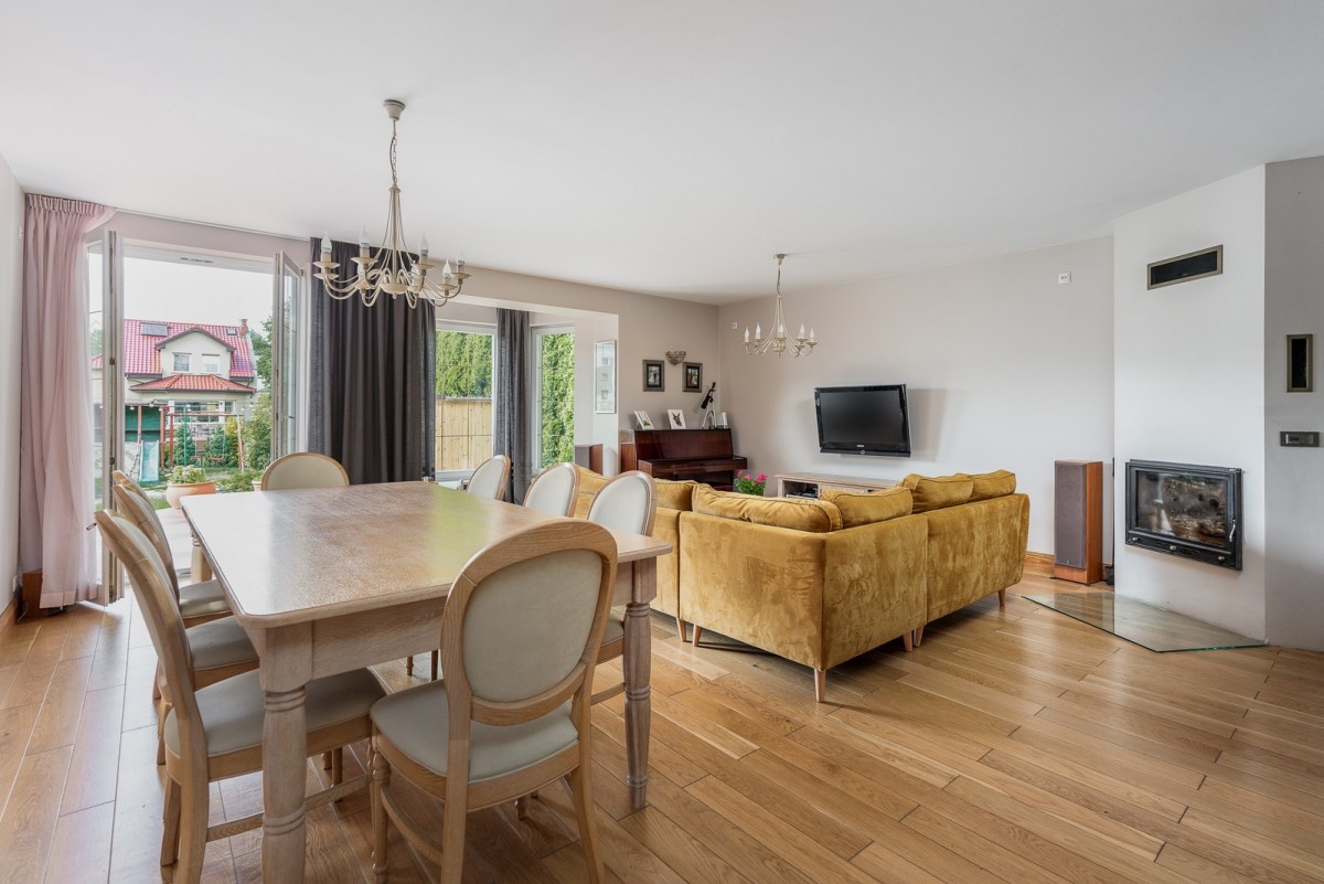 - obszerny salon z jadalnią, wyjściem na taras i ogród;