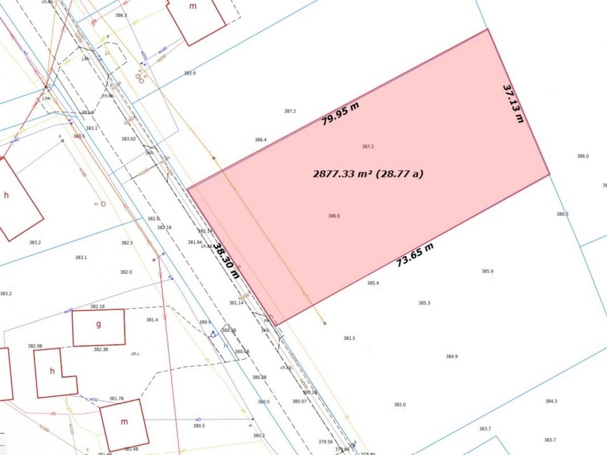 - Media dostępne w drodze głównej lub przy niej - w bezpośrednim sąsiedztwie działki znajduje się prąd, gaz, woda oraz kanalizacja, co znacznie ułatwia proces inwestycyjny.