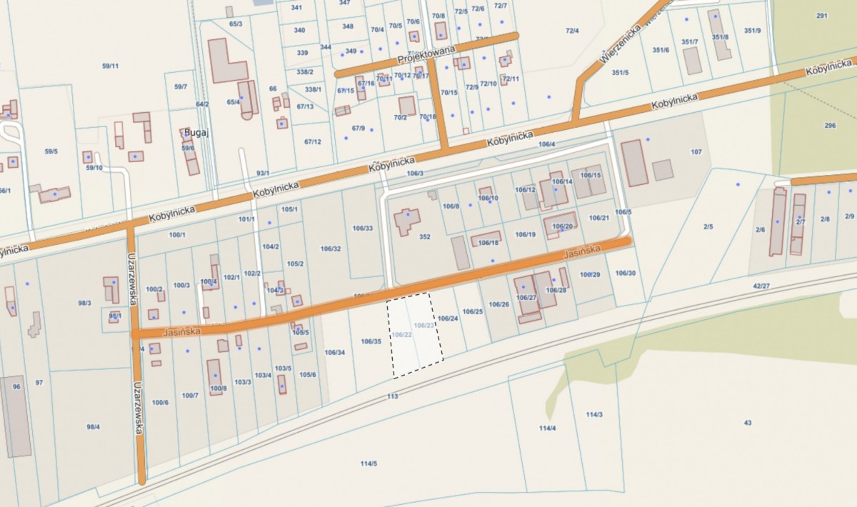 * nr 106/22 - 1 889 m², front 19,5 m, kształt lekki trapez