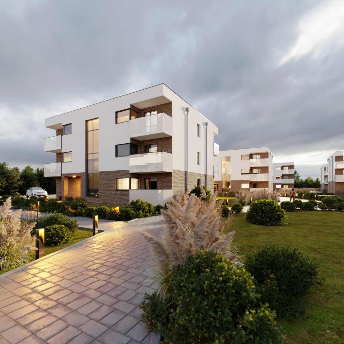Projekt przewiduje nowoczesną, funkcjonalną architekturę, która optymalizuje koszty budowy przy jednoczesnym zachowaniu wysokiej atrakcyjności wizualnej dla klienta końcowego. Duże przeszklenia i przemyślane układy pomieszczeń gwarantują szybką rotację lokali na rynku.